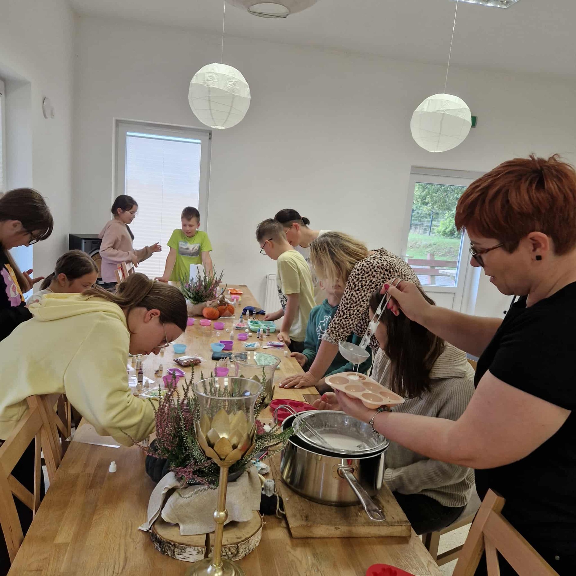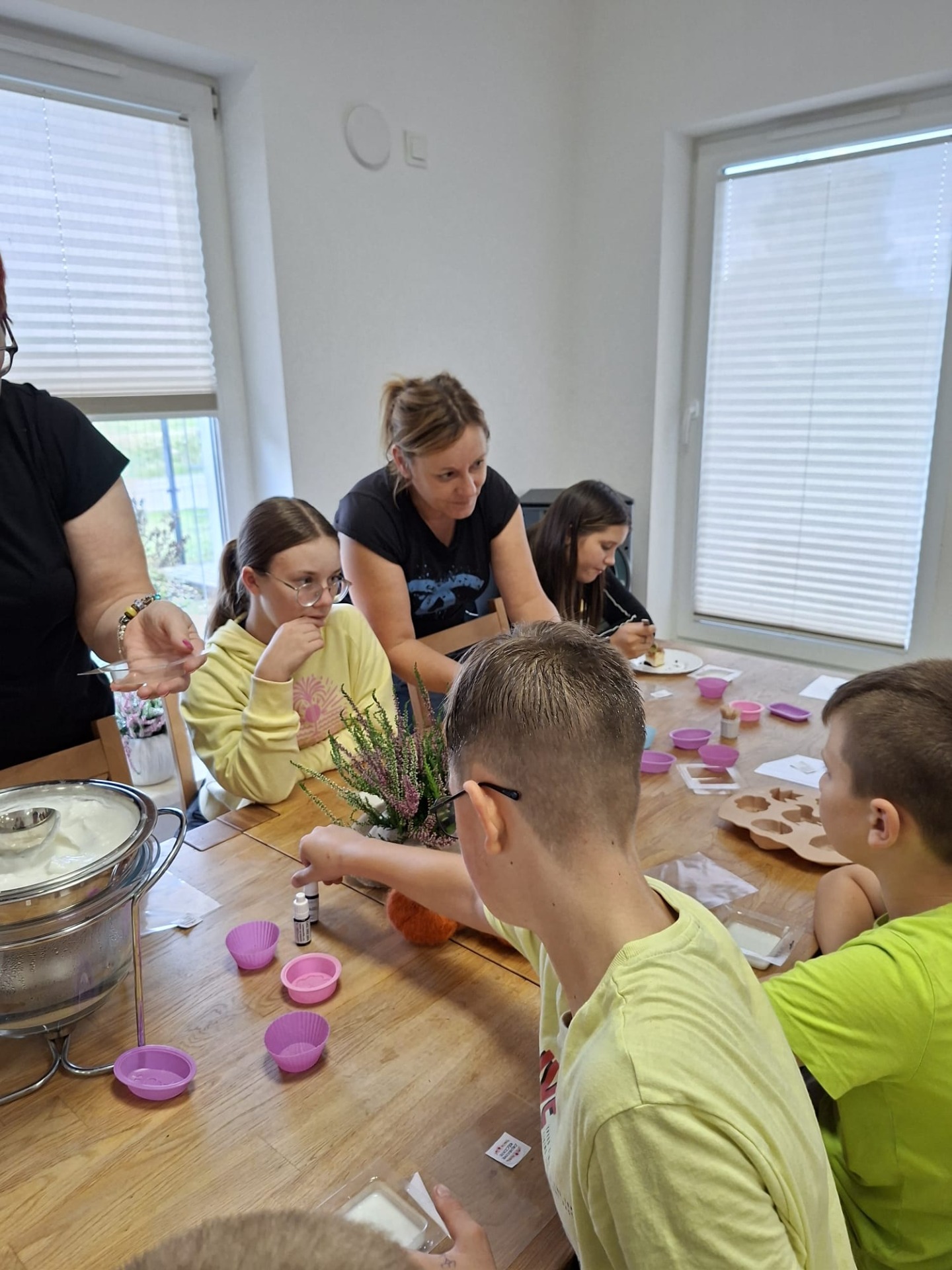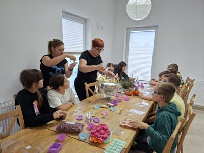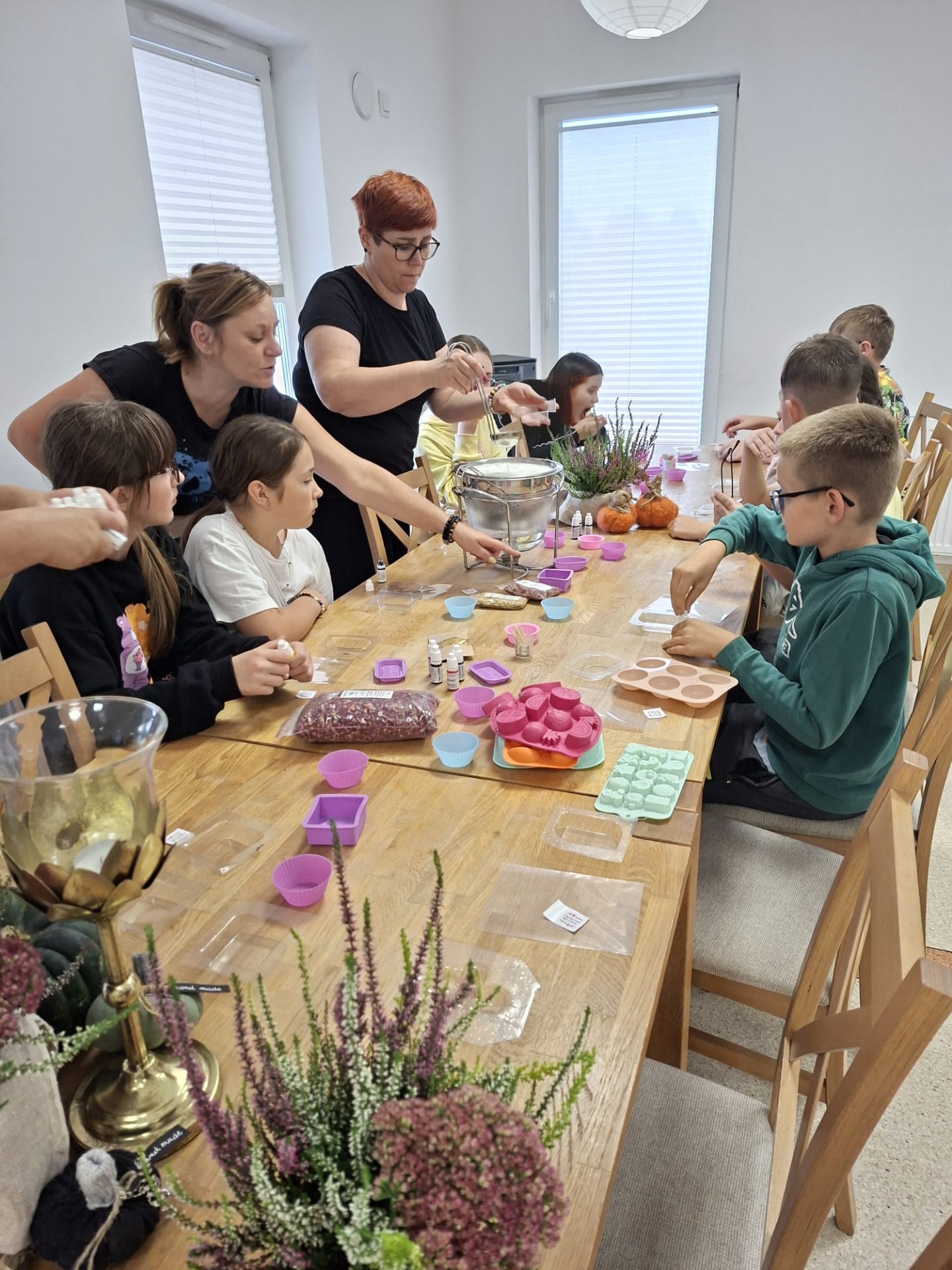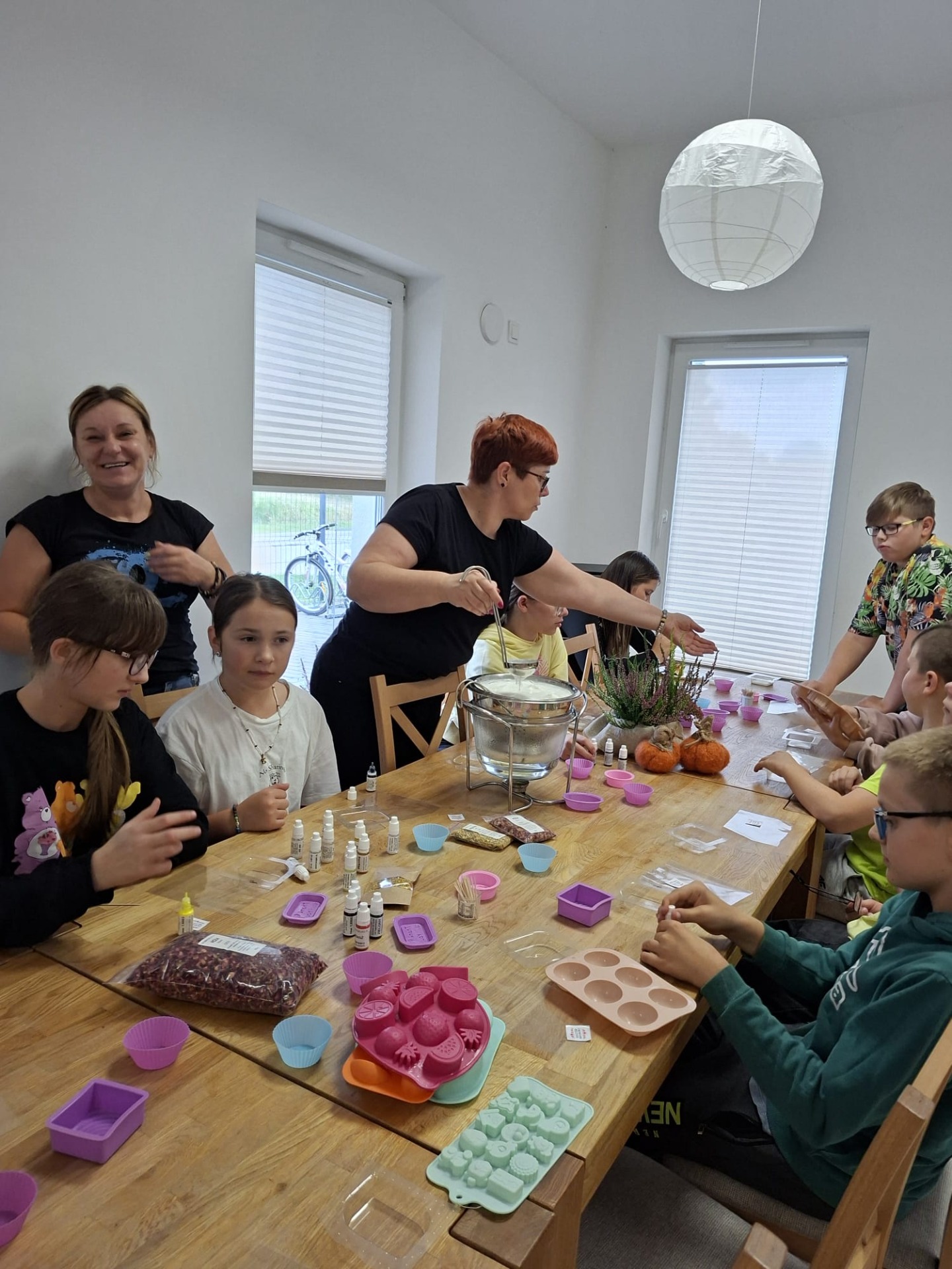 Zajęcia poprowadziła Monika Wychowałek - pracownik świetlicy wiejskiej oraz animatorka Justyna Pacuła-Woźniak. Prowadzące zachęcały dzieci do ekologicznego stylu życia, z pasją opowiadały o tym, jak wiele można zrobić, korzystając z naturalnych składników, które często mamy w domu. Gliceryna roślinna, olejki eteryczne, suszone zioła i kwiaty — to wszystko posłużyło dzieciom do stworzenia własnych, niepowtarzalnych mydełek.