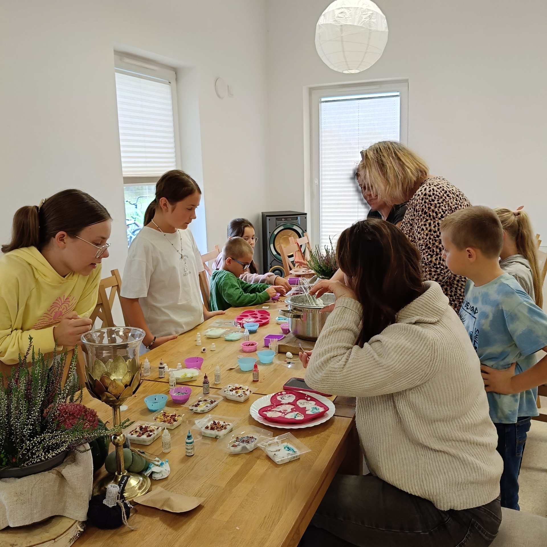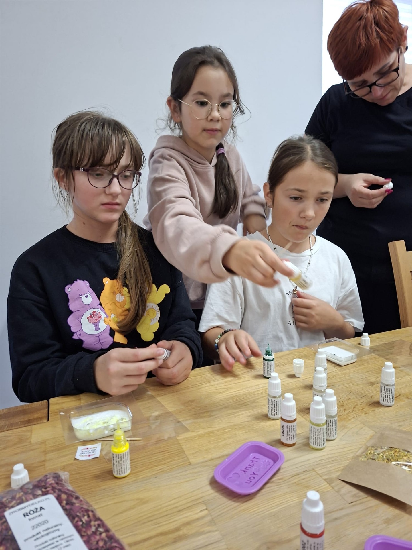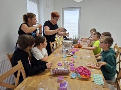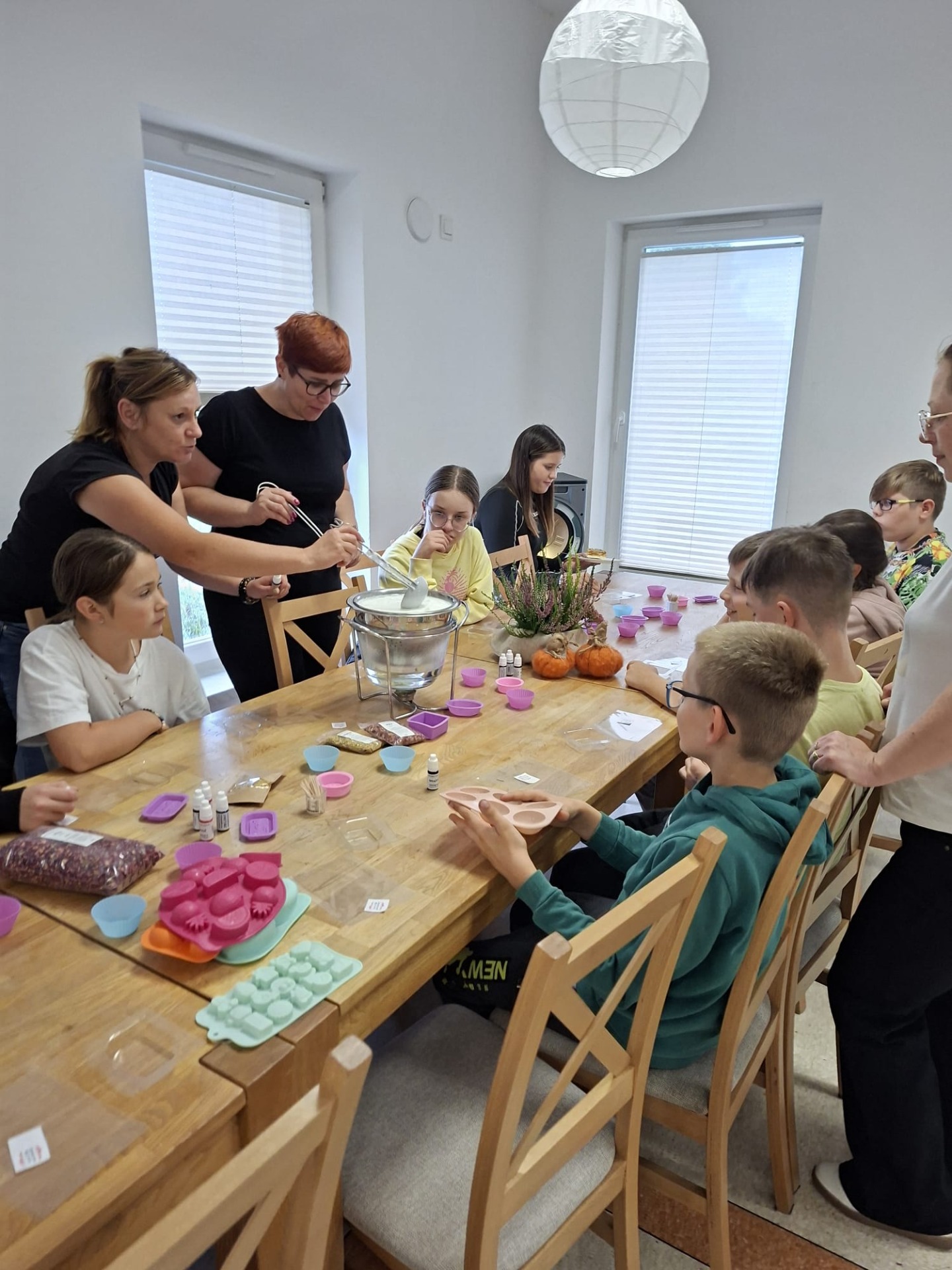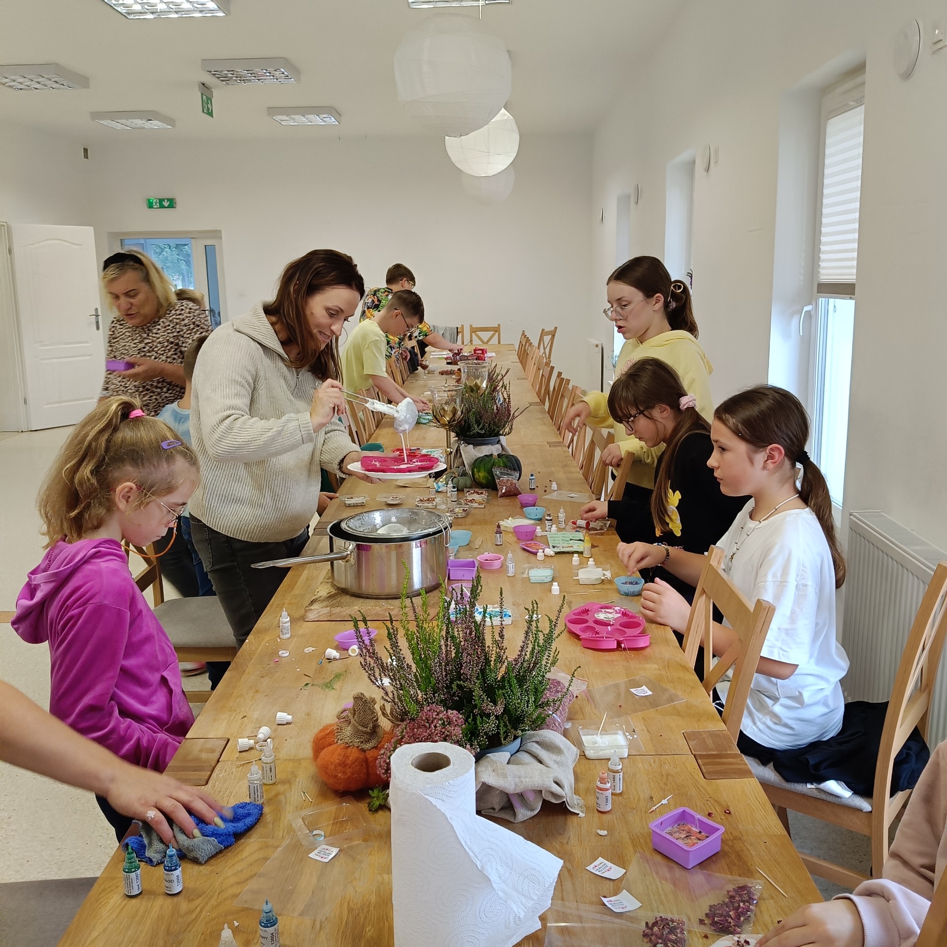 Zajęcia poprowadziła Monika Wychowałek - pracownik świetlicy wiejskiej oraz animatorka Justyna Pacuła-Woźniak. Prowadzące zachęcały dzieci do ekologicznego stylu życia, z pasją opowiadały o tym, jak wiele można zrobić, korzystając z naturalnych składników, które często mamy w domu. Gliceryna roślinna, olejki eteryczne, suszone zioła i kwiaty — to wszystko posłużyło dzieciom do stworzenia własnych, niepowtarzalnych mydełek.