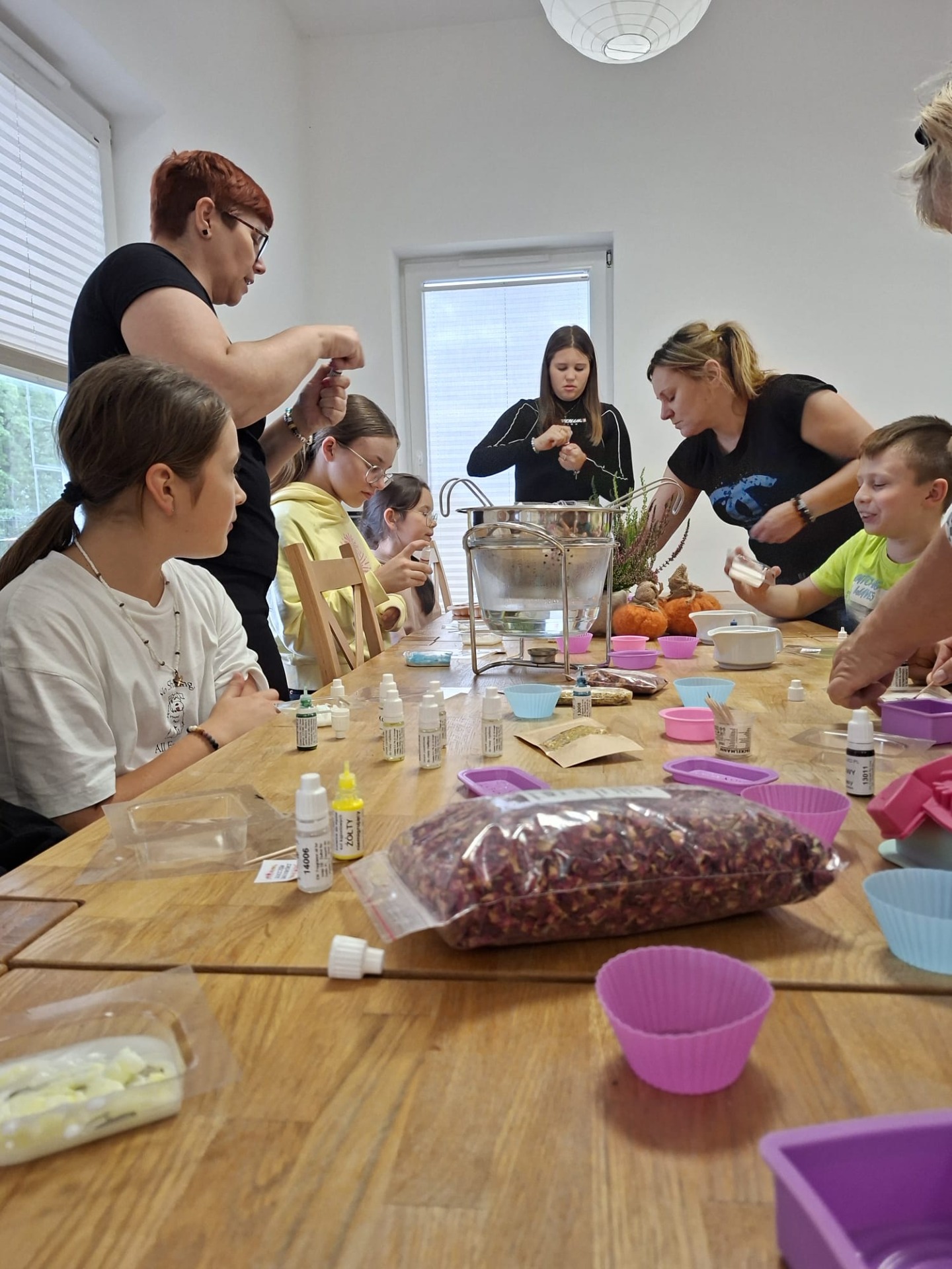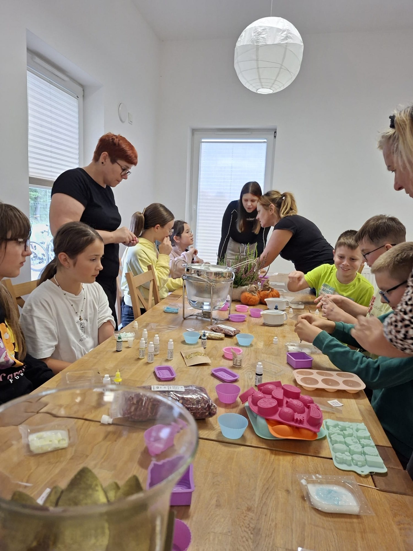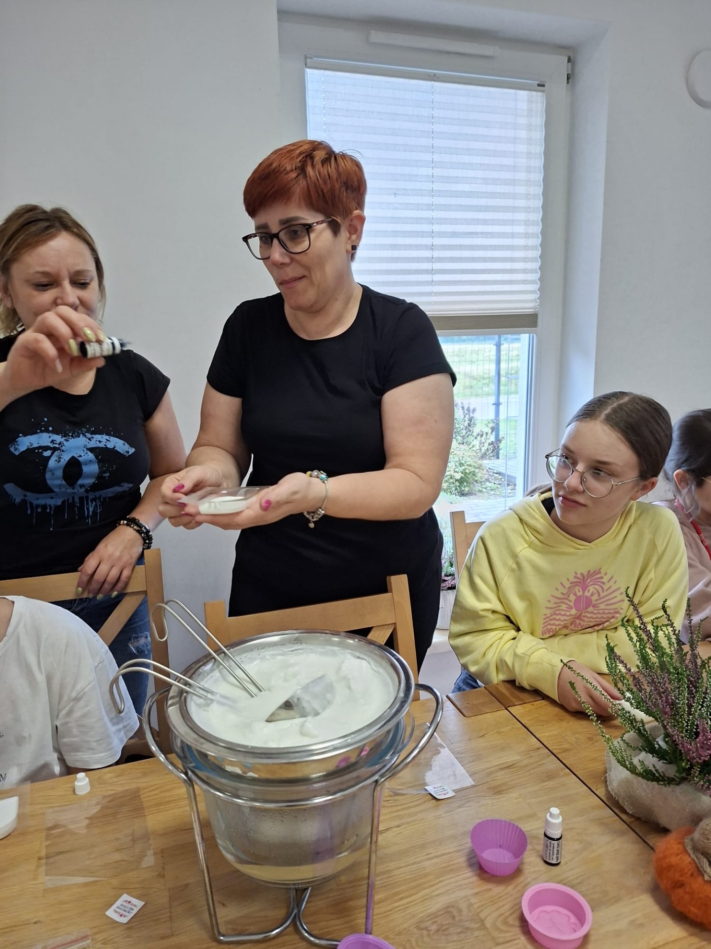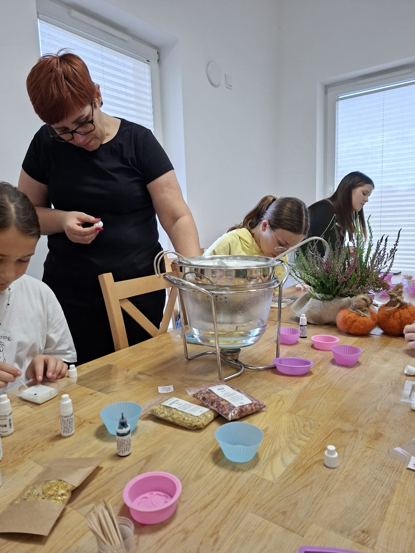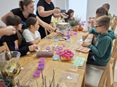 Zajęcia poprowadziła Monika Wychowałek - pracownik świetlicy wiejskiej oraz animatorka Justyna Pacuła-Woźniak. Prowadzące zachęcały dzieci do ekologicznego stylu życia, z pasją opowiadały o tym, jak wiele można zrobić, korzystając z naturalnych składników, które często mamy w domu. Gliceryna roślinna, olejki eteryczne, suszone zioła i kwiaty — to wszystko posłużyło dzieciom do stworzenia własnych, niepowtarzalnych mydełek.