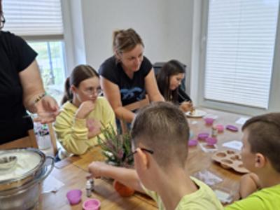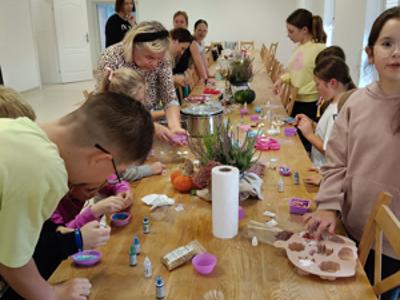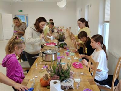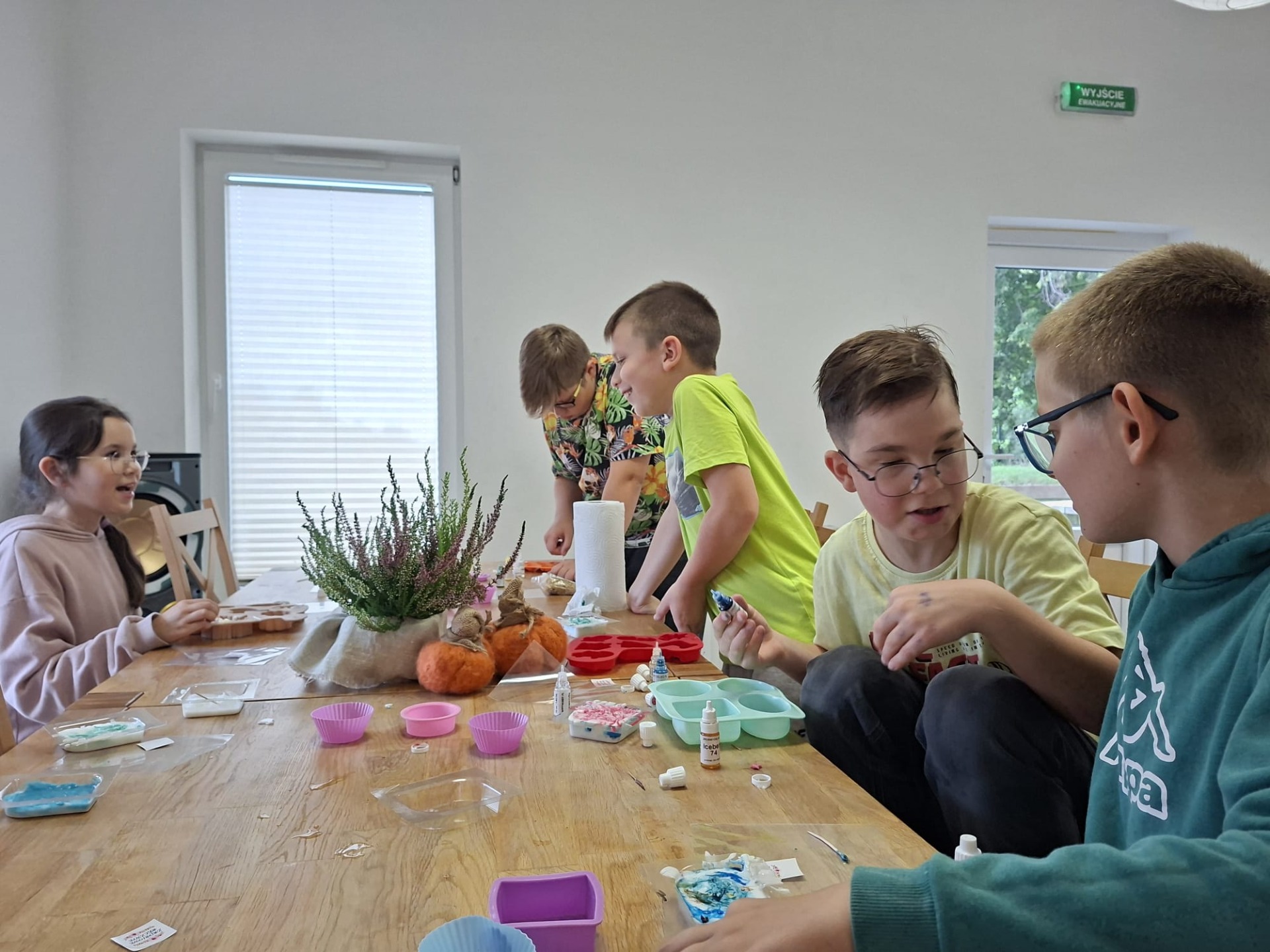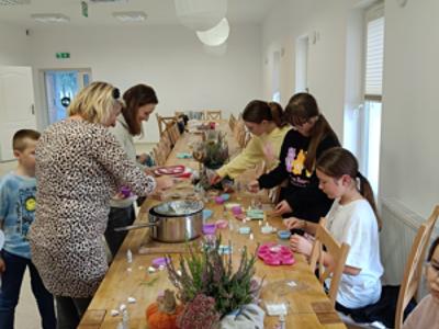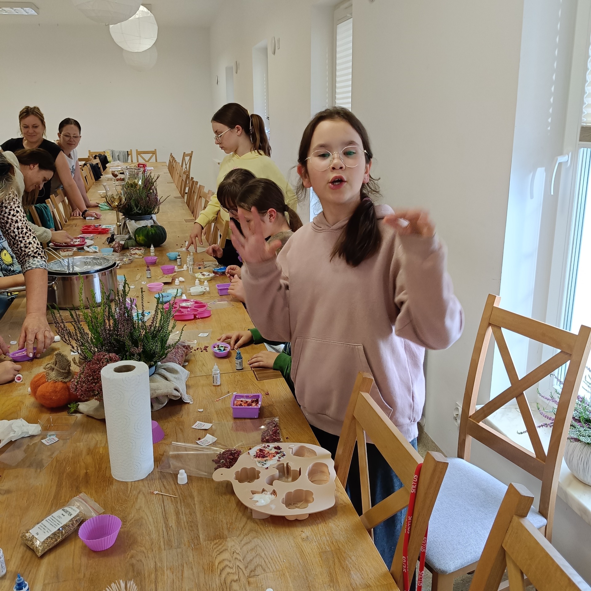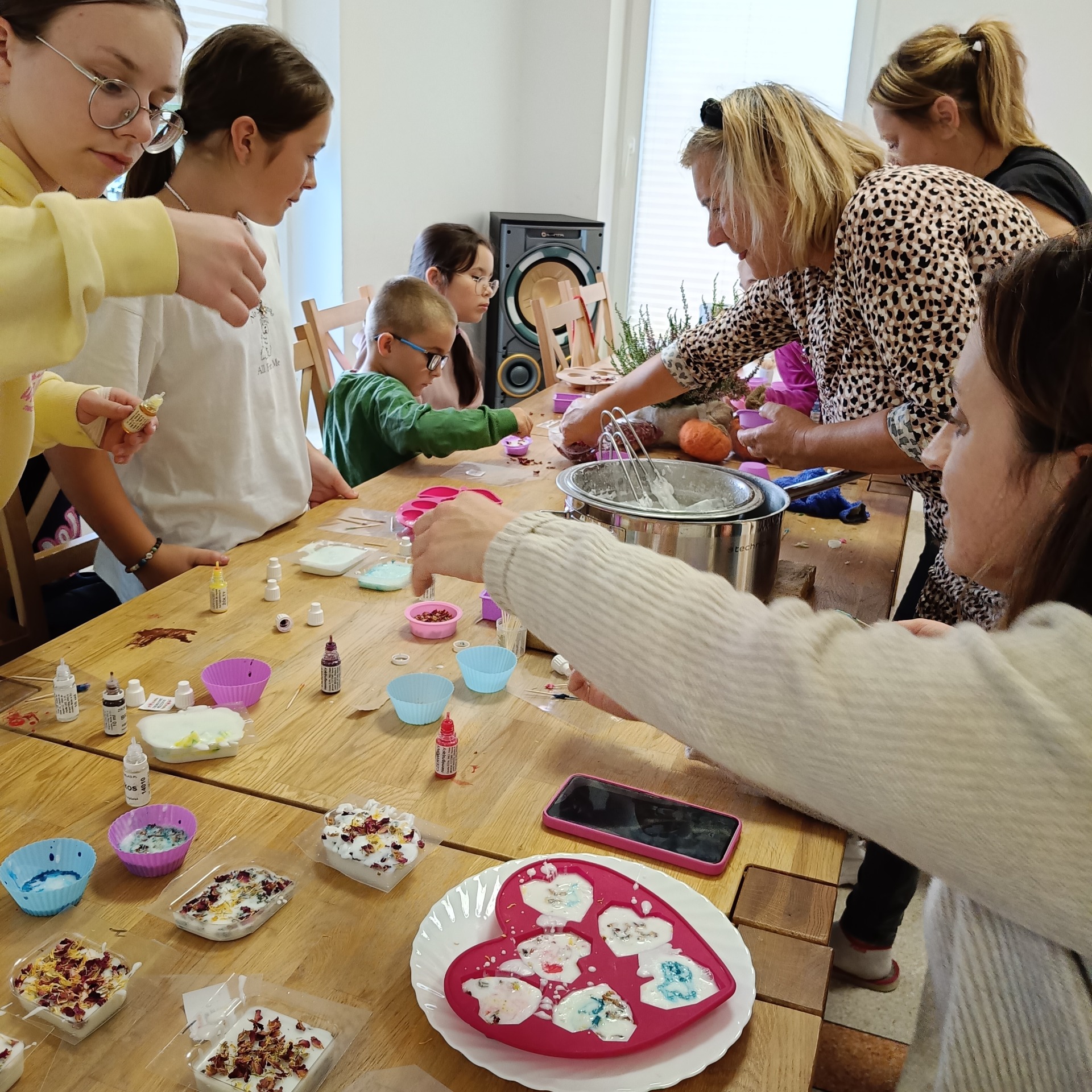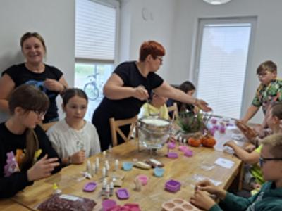 Zajęcia poprowadziła Monika Wychowałek - pracownik świetlicy wiejskiej oraz animatorka Justyna Pacuła-Woźniak. Prowadzące zachęcały dzieci do ekologicznego stylu życia, z pasją opowiadały o tym, jak wiele można zrobić, korzystając z naturalnych składników, które często mamy w domu. Gliceryna roślinna, olejki eteryczne, suszone zioła i kwiaty — to wszystko posłużyło dzieciom do stworzenia własnych, niepowtarzalnych mydełek.