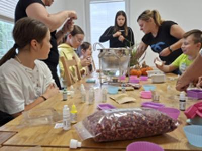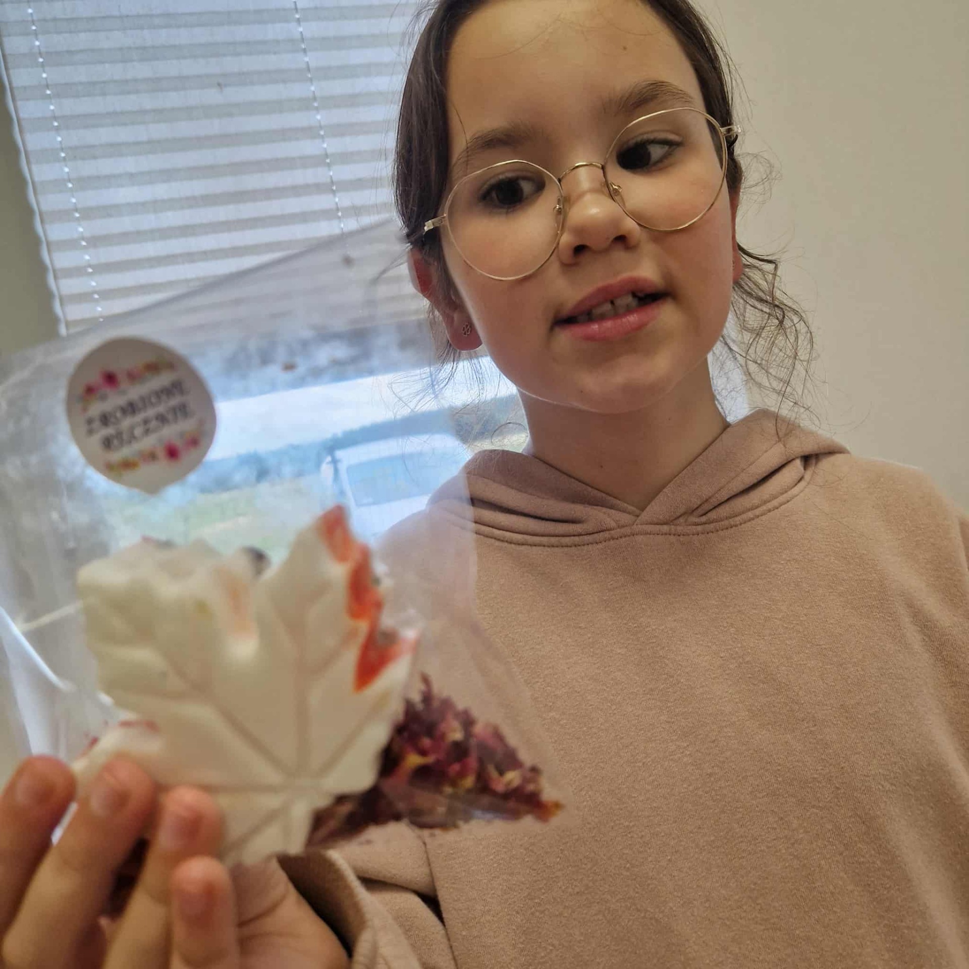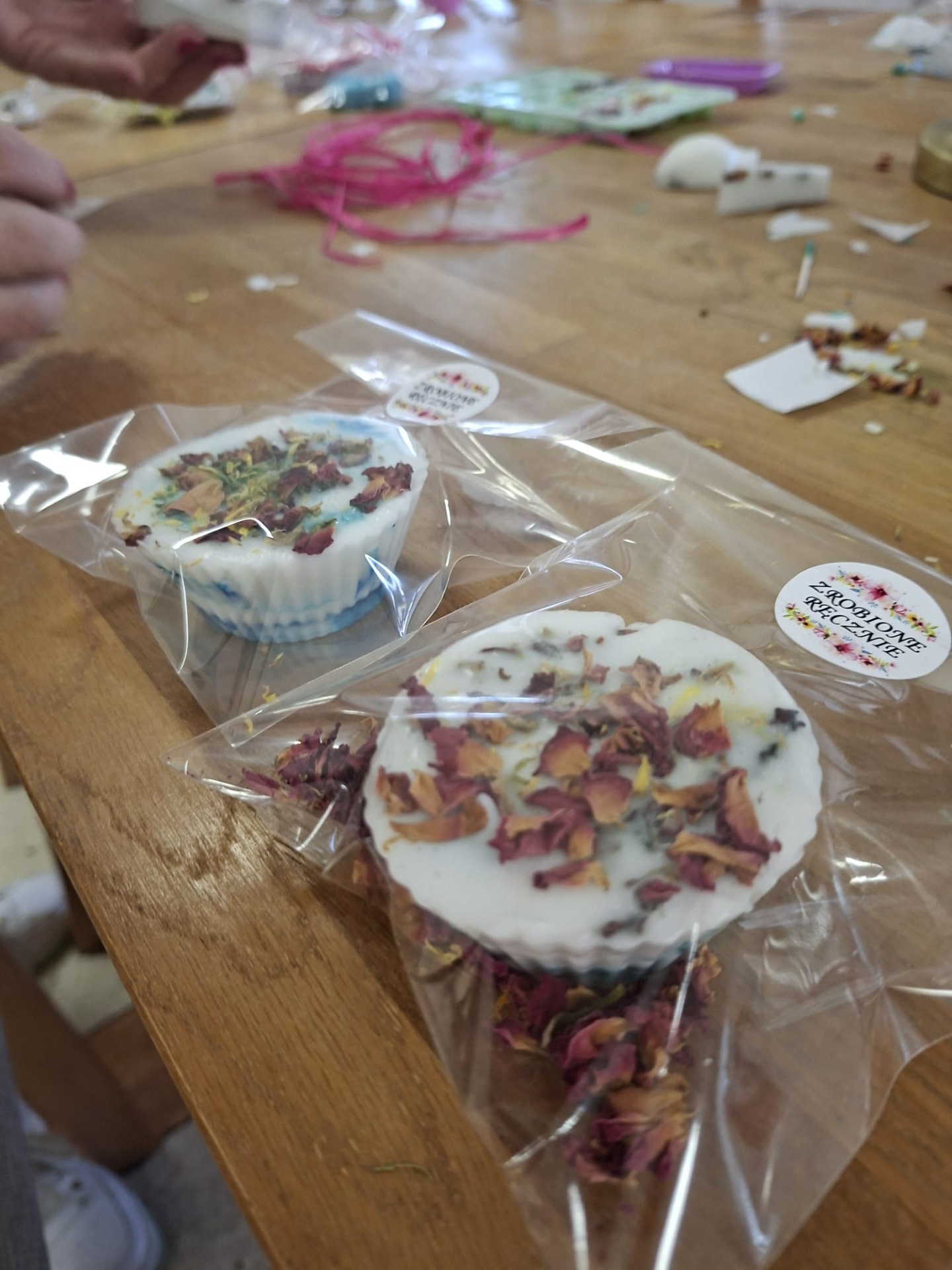— Bardzo się cieszę, że mogłam tu być. Moje mydełko pachnie pomarańczą i ma w środku kwiatki! — opowiadała z dumą jedna z uczestniczek, pokazując swoje dzieło.