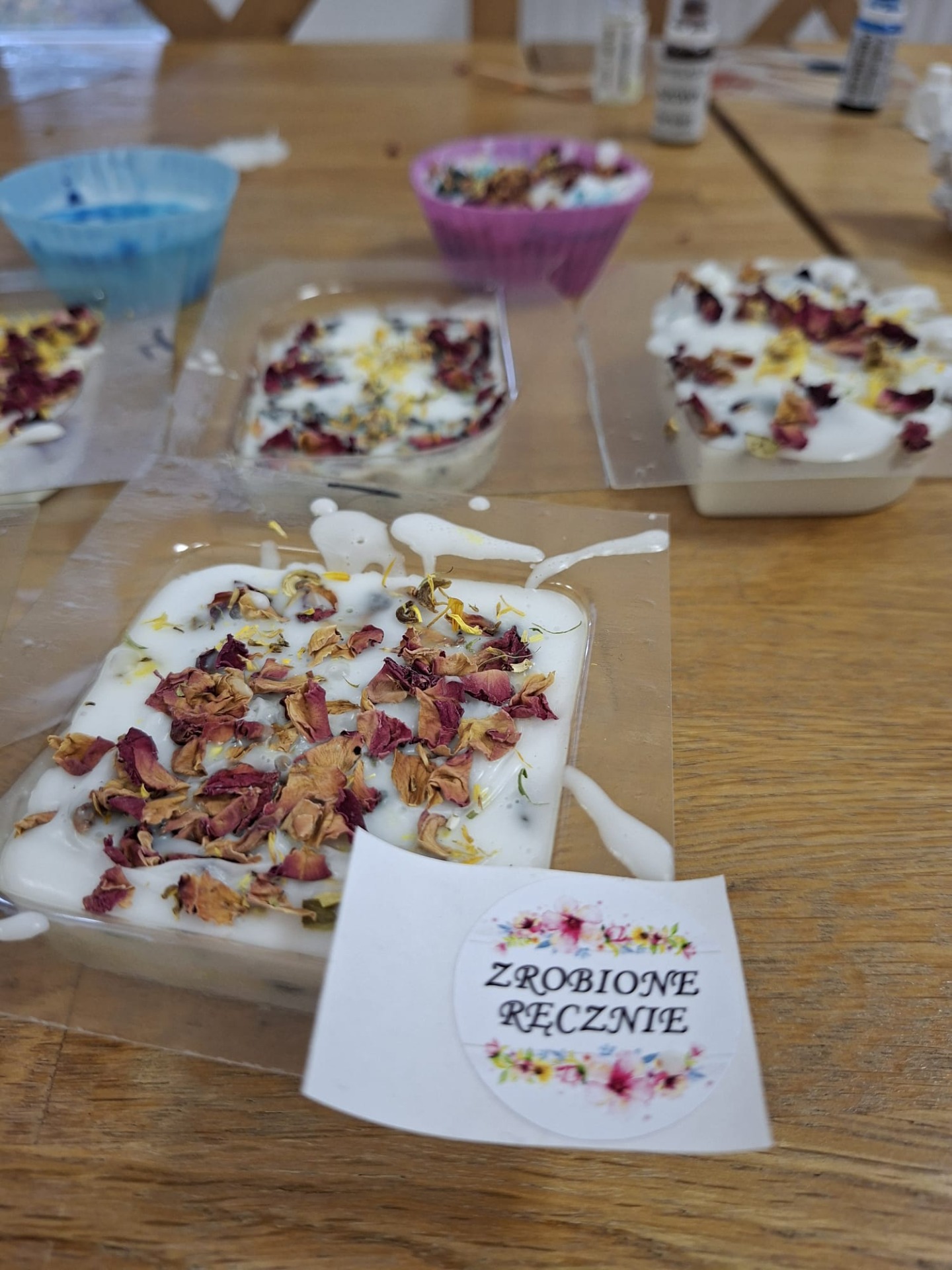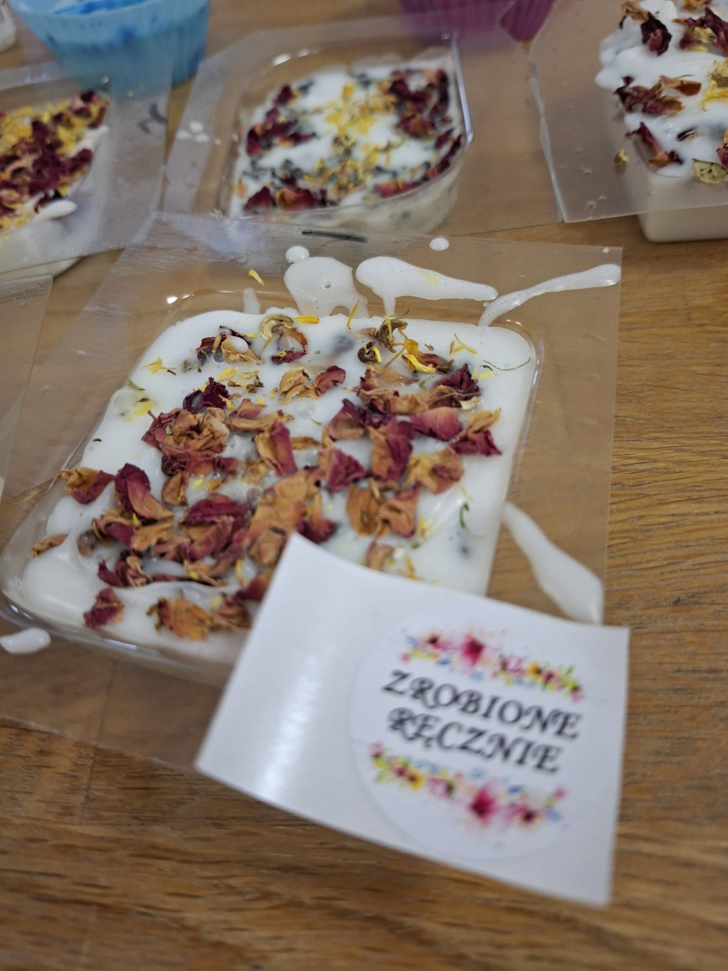 Każdy uczestnik sam decydował o kształcie, kolorze i zapachu swojego mydła. Pojawiły się mydełka z lawendą, nagietkiem, a nawet z suszonymi płatkami róż. Dzieci dowiedziały się, że warto wybierać biodegradowalne zamienniki popularnych ozdób.