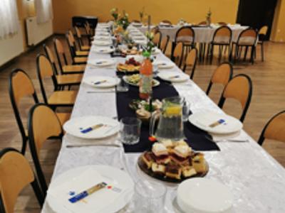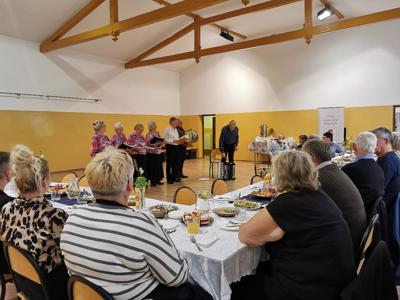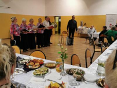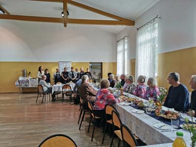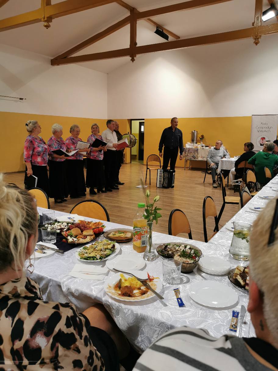 Uczestnicy mogli wspólnie spędzić czas przy pysznych potrawach, rozmowach i dźwiękach muzyki na żywo. O wspaniałą oprawę artystyczną zadbał zespół Domasławianie, któremu serdecznie dziękujemy za stworzenie radosnej atmosfery. Szczególne podziękowania kierujemy również do Pana Jerzego Krzyżanowskiego - radnego i kierownika muzycznego zespołu.