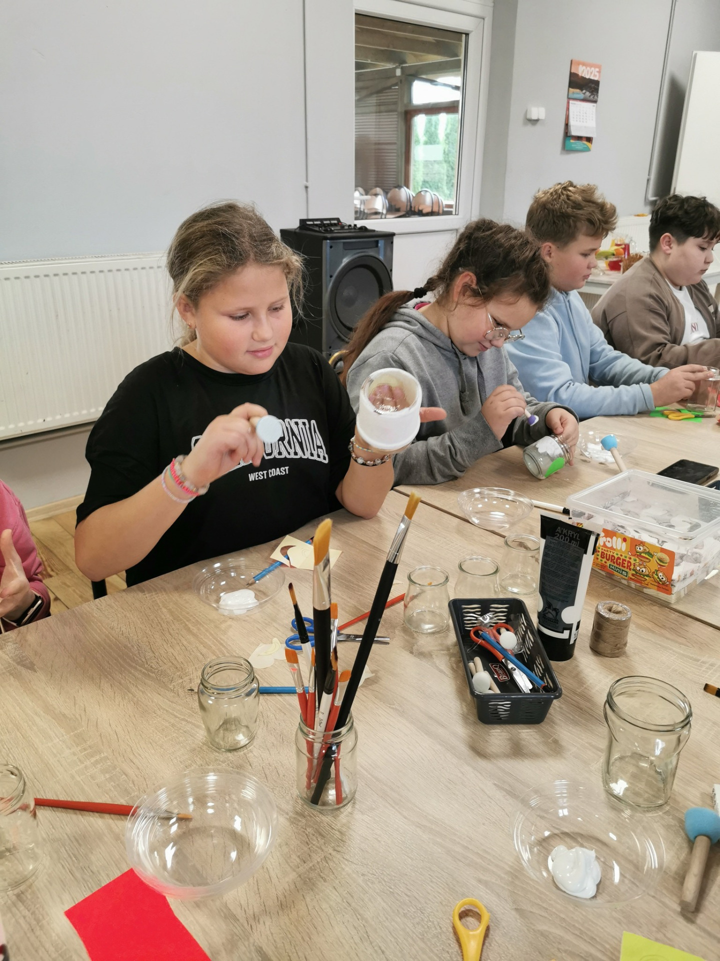 W świetlicy w Nowym Jarosławiu najmłodsi udowodnili, że ekologia może być prawdziwą przygodą! Podczas warsztatów „Przyjaciele drużyny Planety Ziemia” dzieci zamieniły zwykłe słoiki w kolorowe świeczniki.