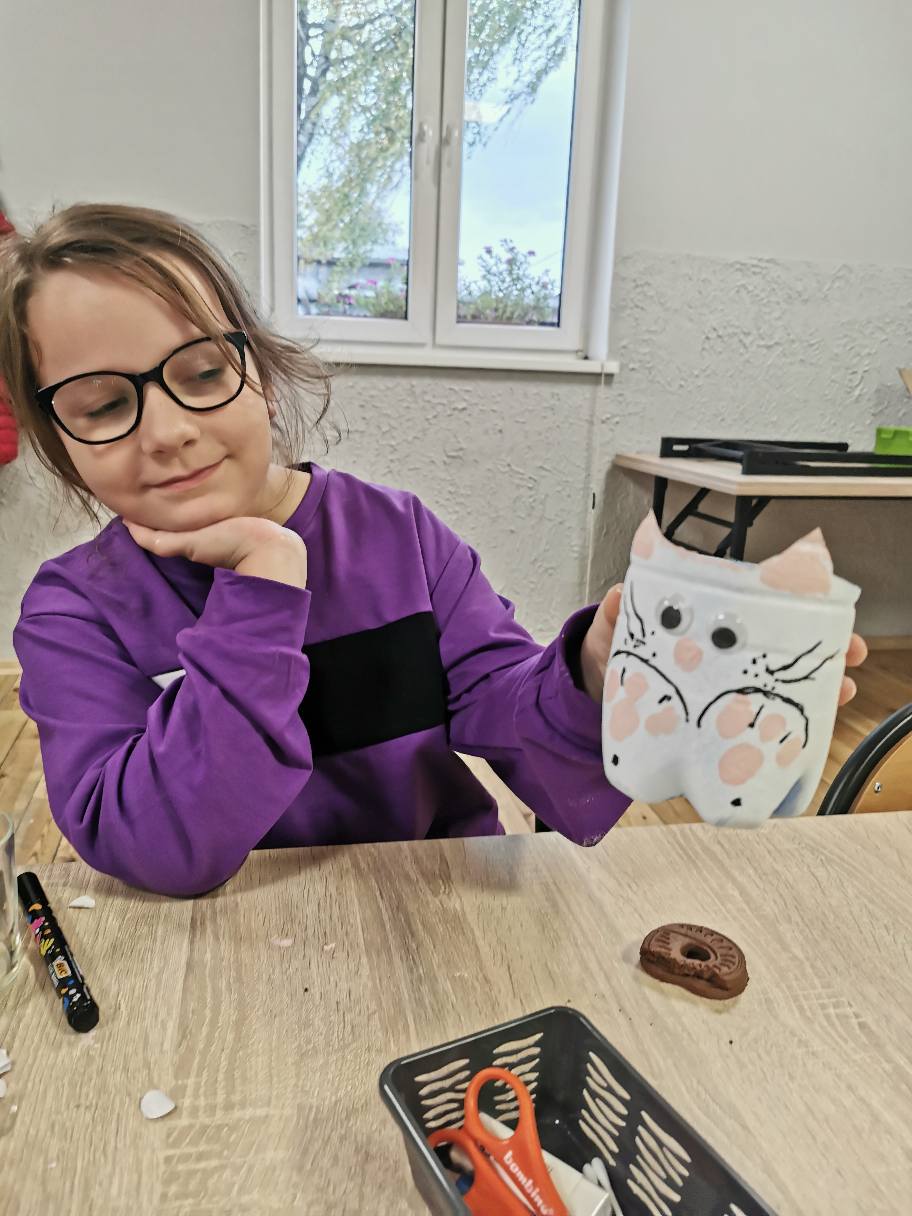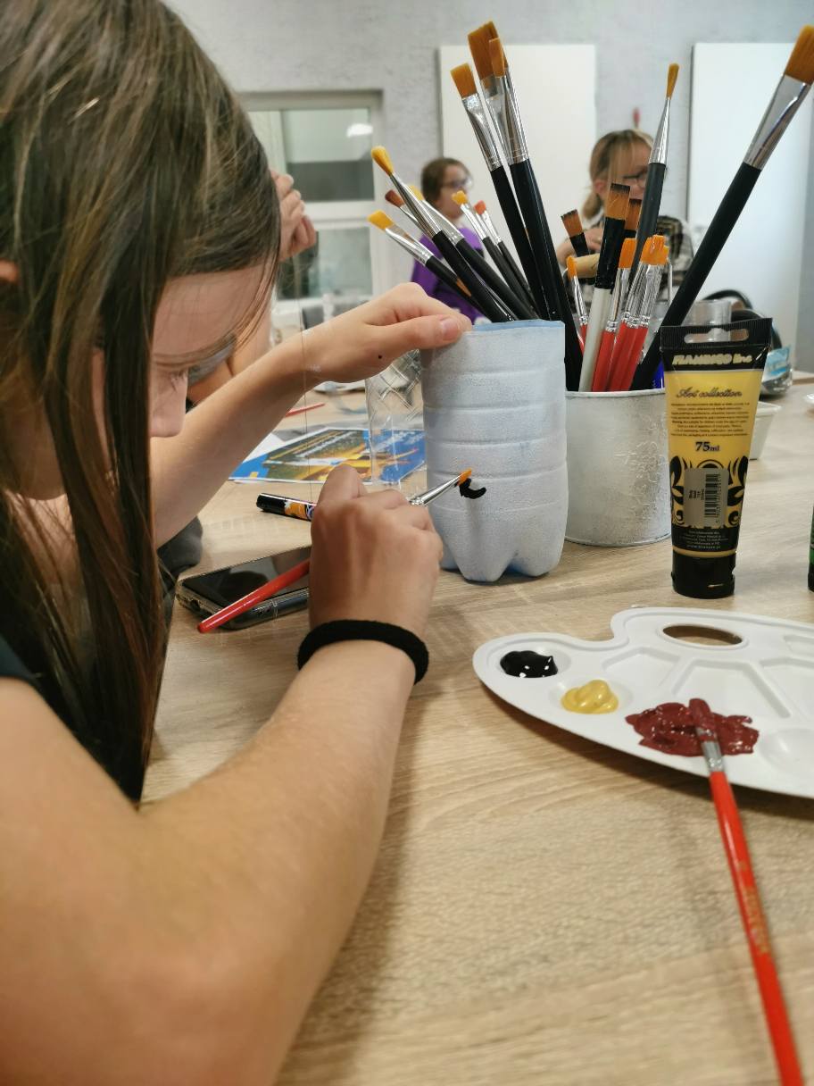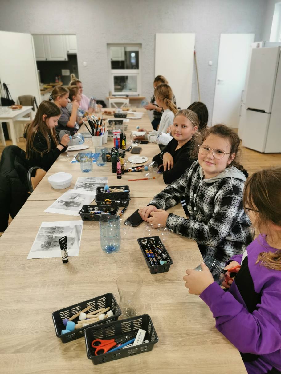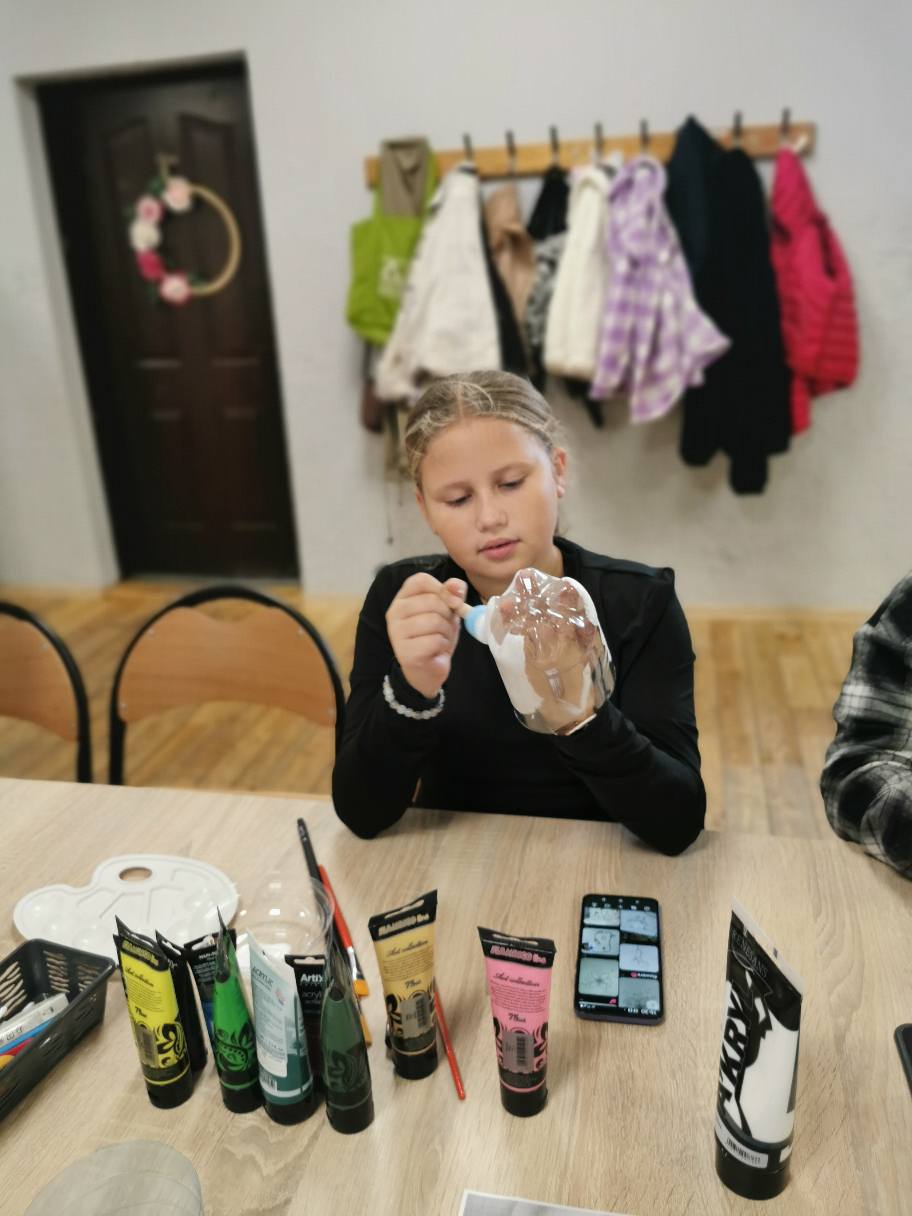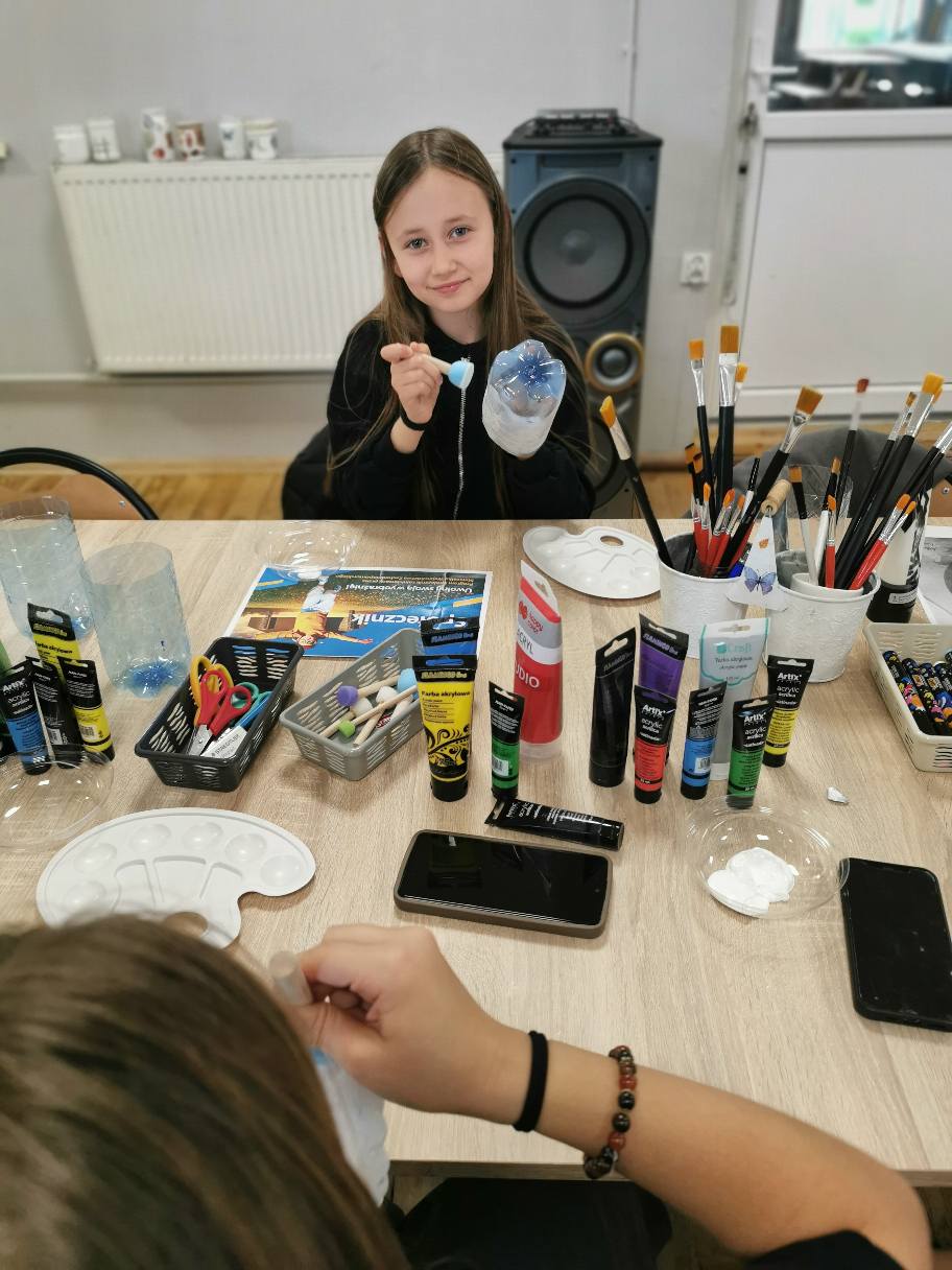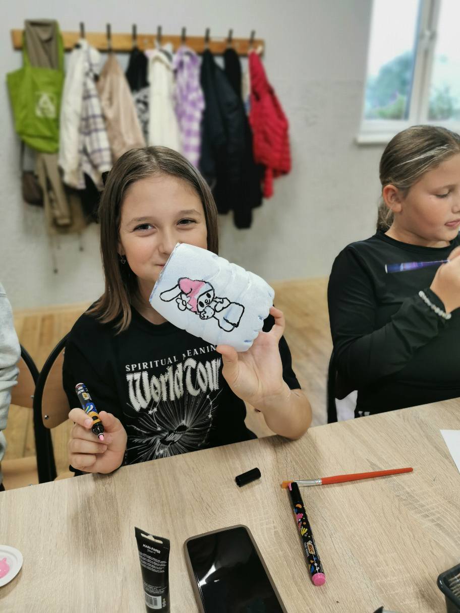 Podczas zajęć uczestnicy przekonali się, że nawet z pozornie bezużytecznych przedmiotów można stworzyć coś pięknego i dowiedzieli sięczym jest recykling. Z plastikowych butelek powstały oryginalne osłonki na doniczki – każda inna, każda wyjątkowa. Dzieci samodzielnie projektowały i ozdabiały swoje prace, wykorzystując farby i z wykorzystaniem przygotowanych szablonów, malowały. Efekt końcowy zachwycił wszystkich – z odpadów narodziły się małe dzieła sztuki.