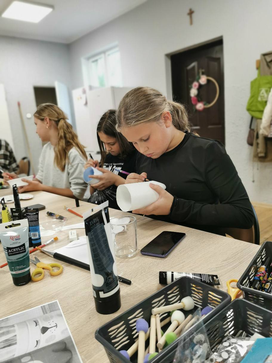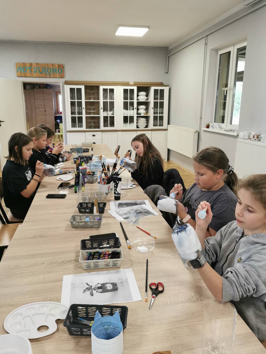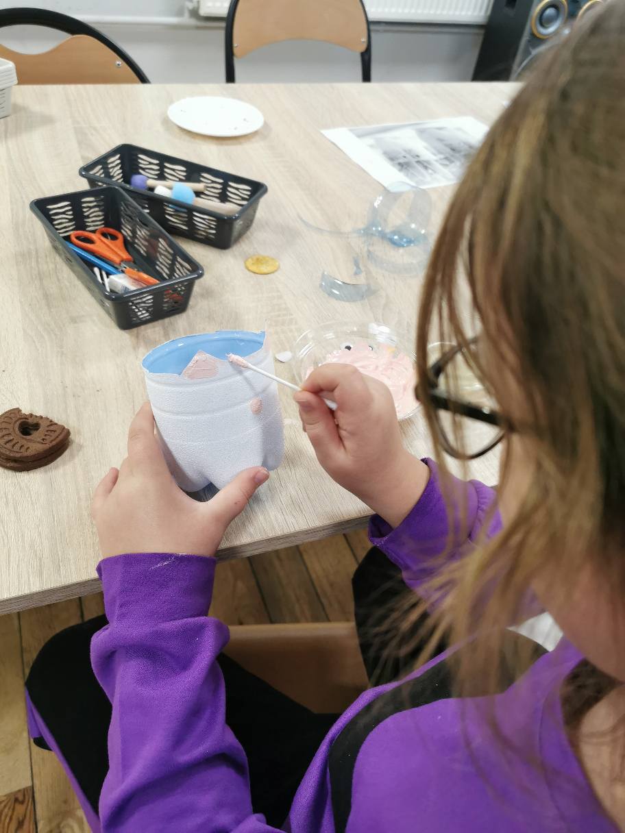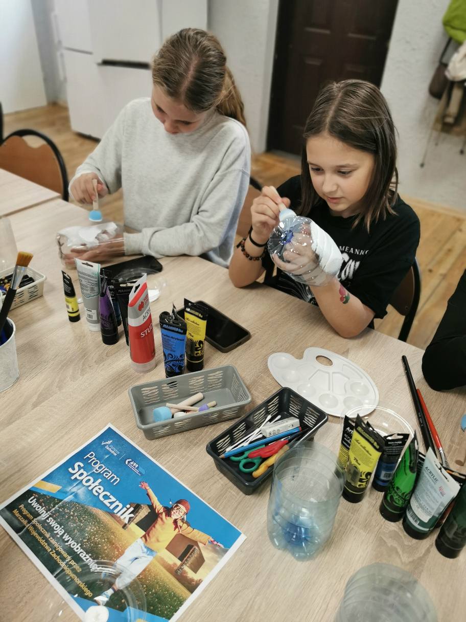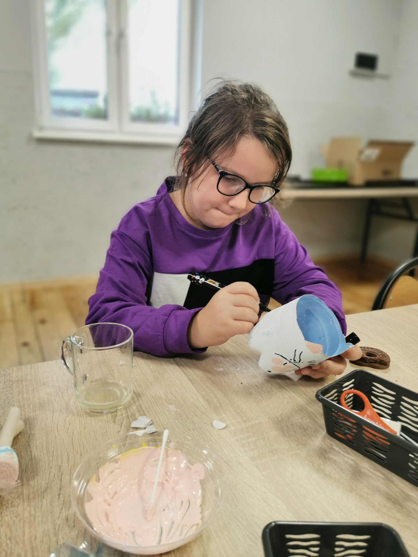 Podczas zajęć uczestnicy przekonali się, że nawet z pozornie bezużytecznych przedmiotów można stworzyć coś pięknego i dowiedzieli sięczym jest recykling. Z plastikowych butelek powstały oryginalne osłonki na doniczki – każda inna, każda wyjątkowa. Dzieci samodzielnie projektowały i ozdabiały swoje prace, wykorzystując farby i z wykorzystaniem przygotowanych szablonów, malowały. Efekt końcowy zachwycił wszystkich – z odpadów narodziły się małe dzieła sztuki.