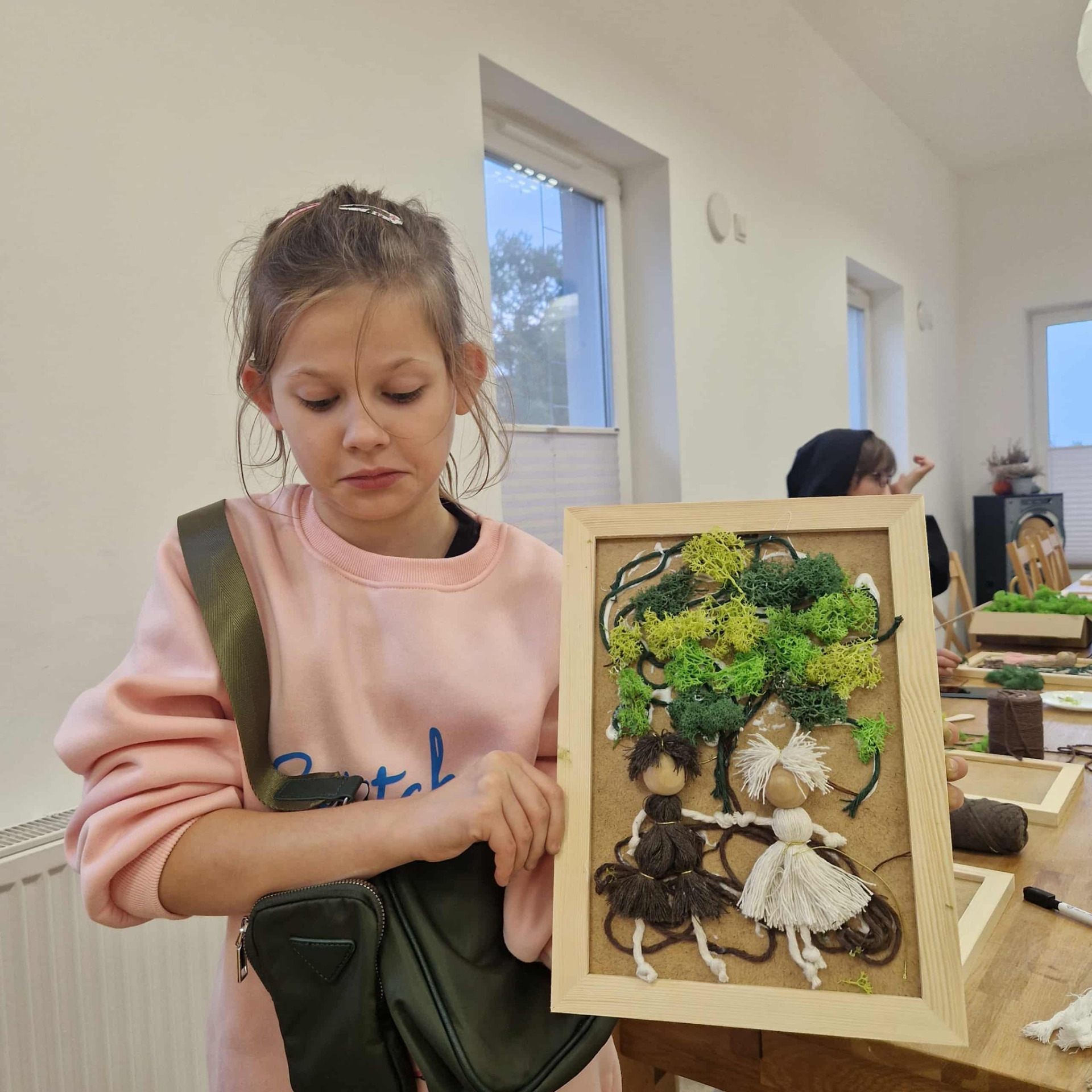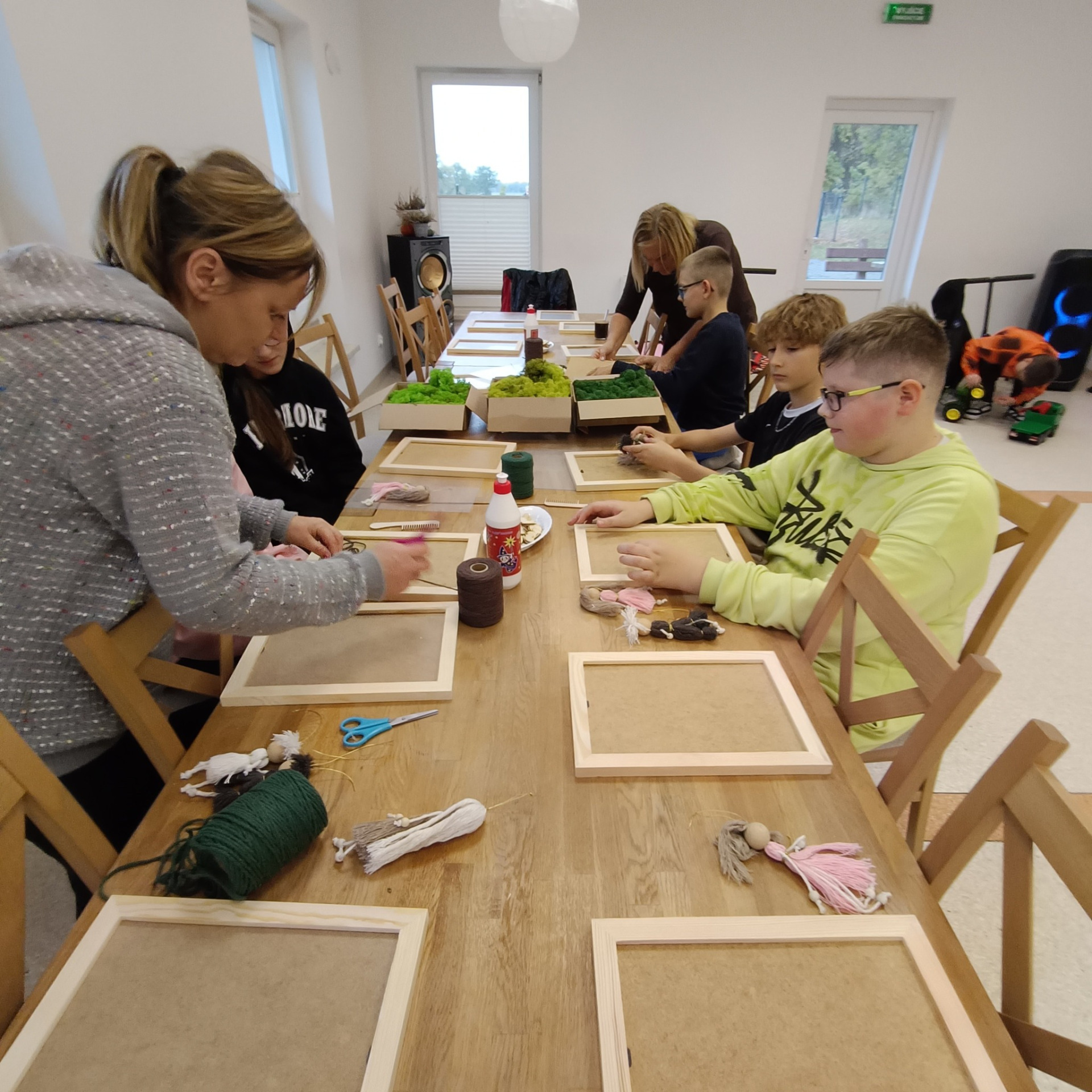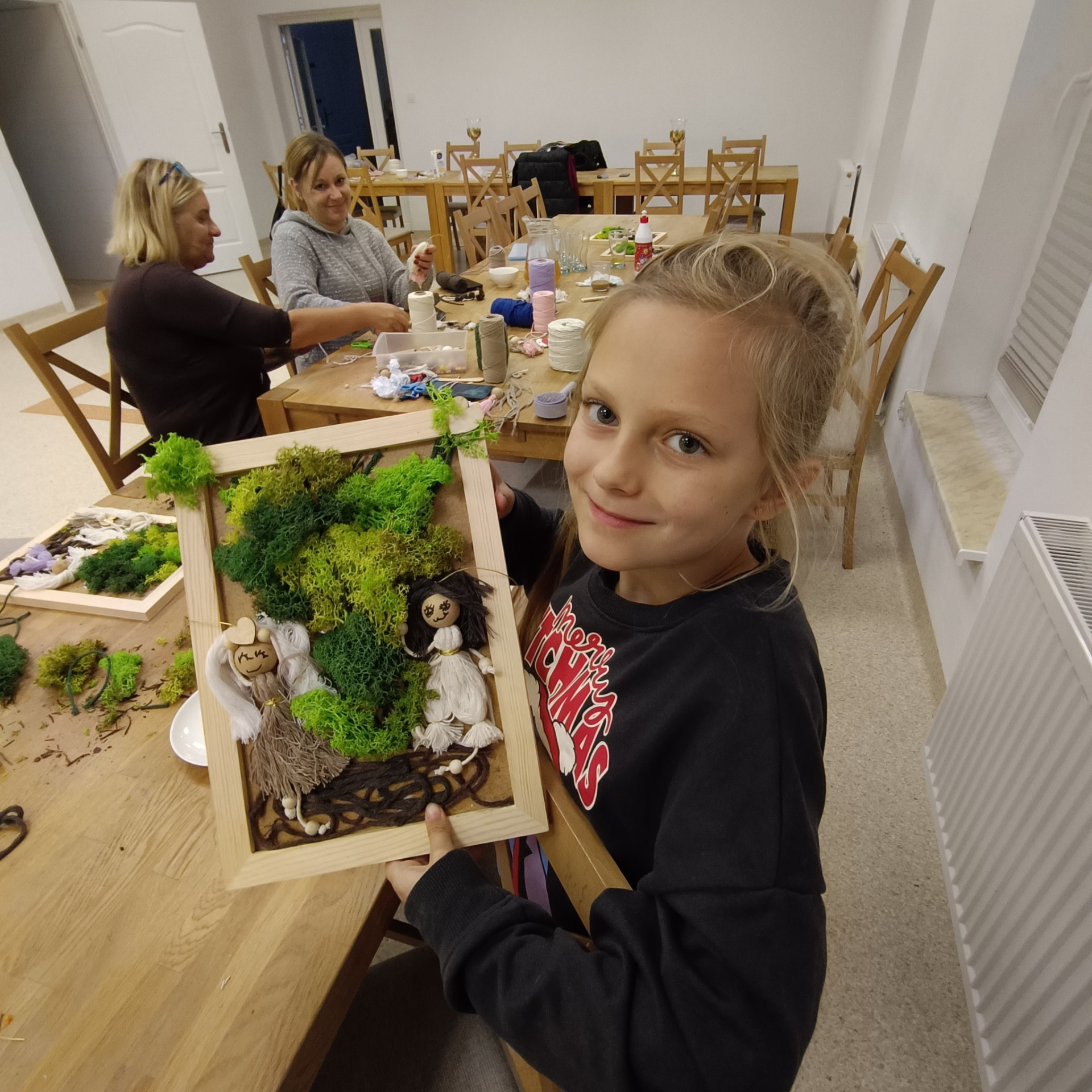 Pod okiem prowadzących uczestnicy – dzieci – uczyły się tworzyć eco-drzewka z makramy w formie obrazu. Z pozoru proste zajęcia szybko zamieniły się w okazję do wymiany pomysłów i doświadczeń. Obrazy wskazują również na element ludzki - ludziki makramowe są przesłaniem, że każdy człowiek powienien dbać o przyrodę, a najwcześniejsza edukacja ekologiczna to ta przekazana przez mamę i tatę. Każdy projekt był inny – kolorowy, pomysłowy, dopracowany w szczegółach.