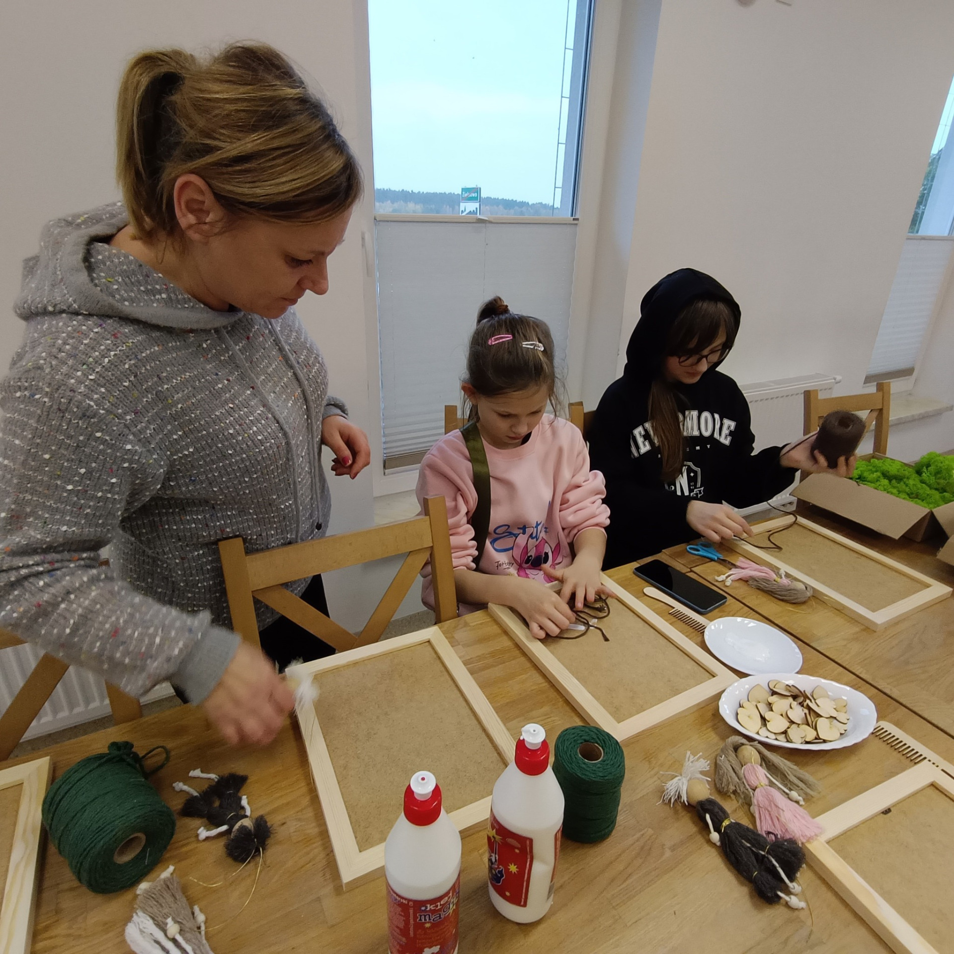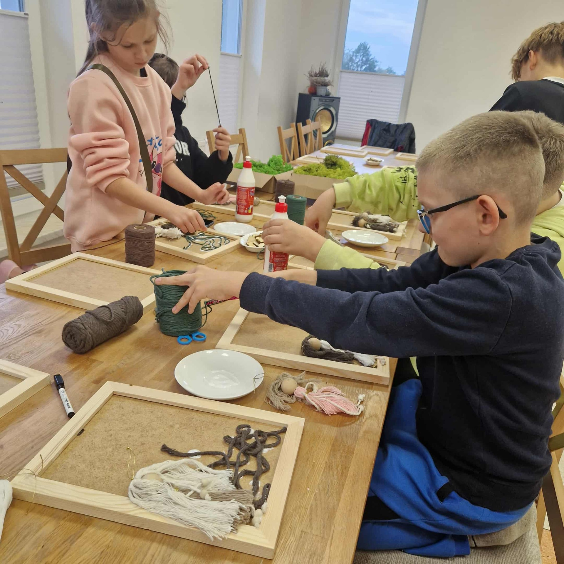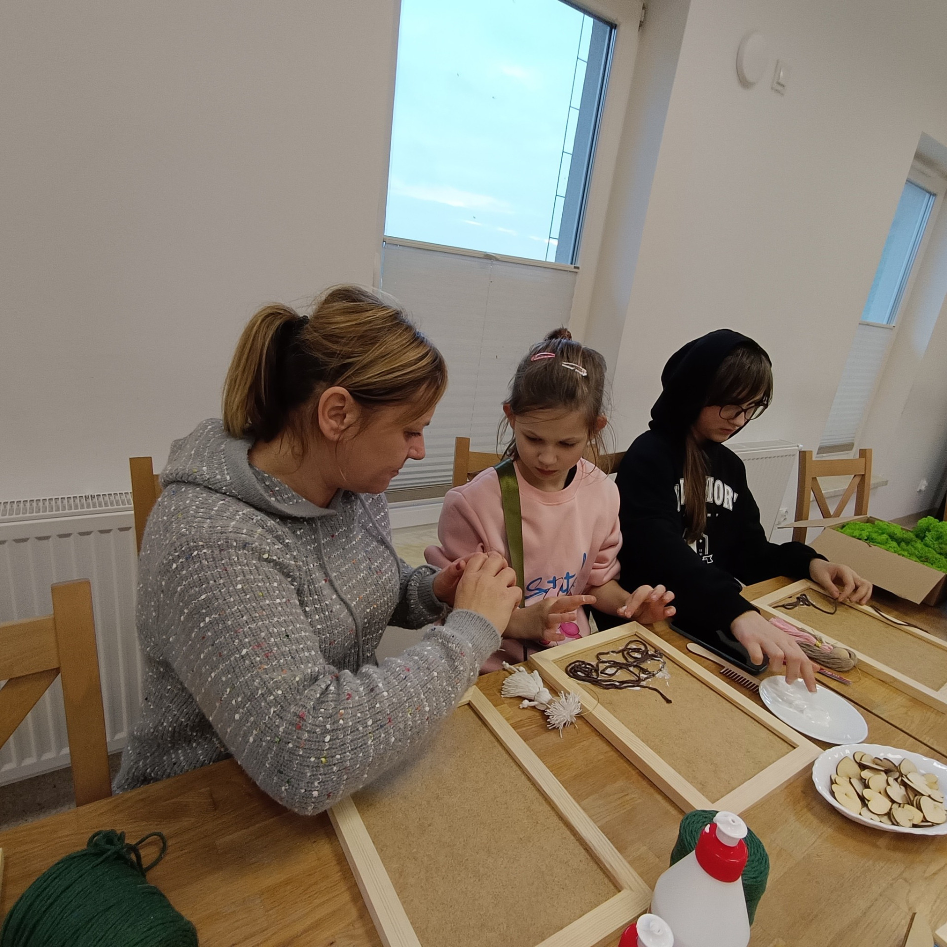 Pod okiem prowadzących uczestnicy – dzieci – uczyły się tworzyć eco-drzewka z makramy w formie obrazu. Z pozoru proste zajęcia szybko zamieniły się w okazję do wymiany pomysłów i doświadczeń. Obrazy wskazują również na element ludzki - ludziki makramowe są przesłaniem, że każdy człowiek powienien dbać o przyrodę, a najwcześniejsza edukacja ekologiczna to ta przekazana przez mamę i tatę. Każdy projekt był inny – kolorowy, pomysłowy, dopracowany w szczegółach.