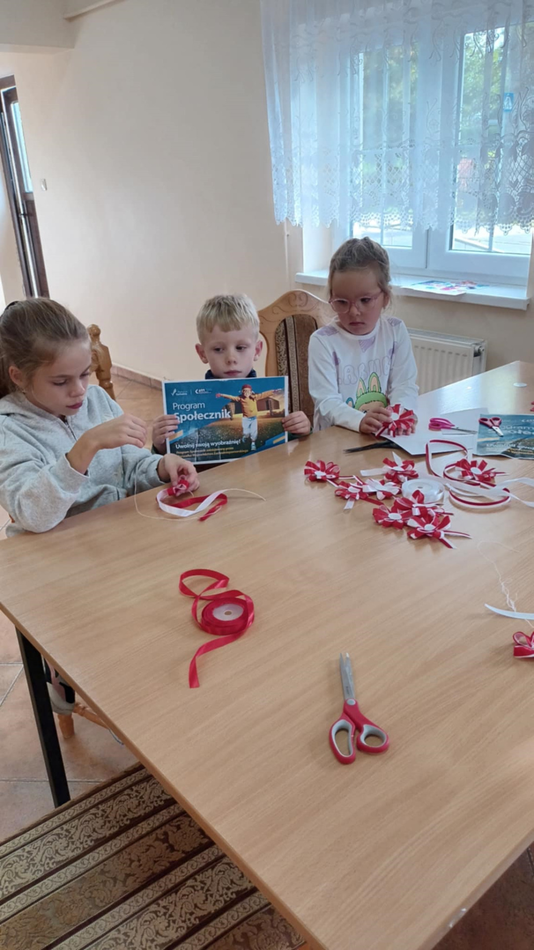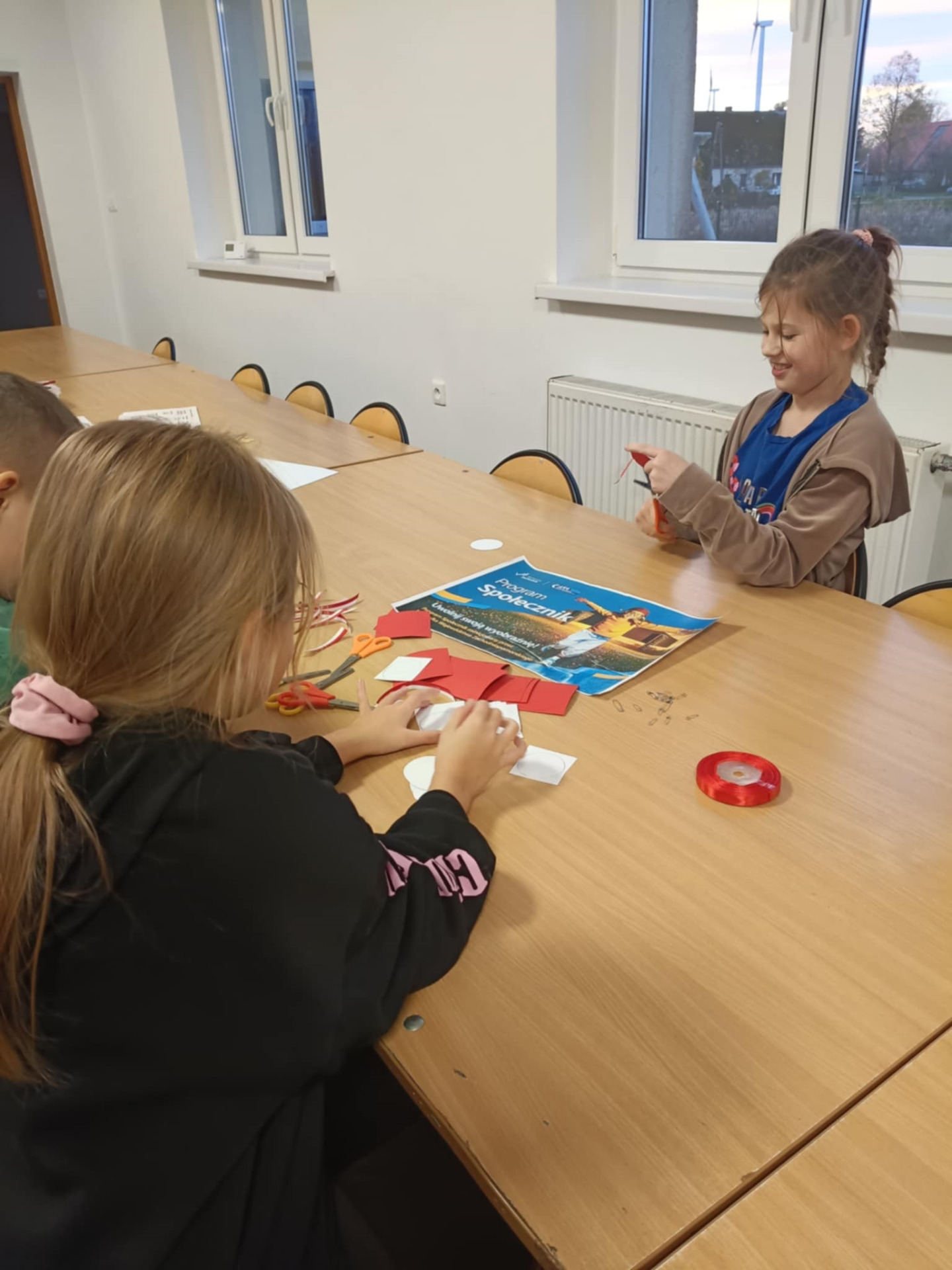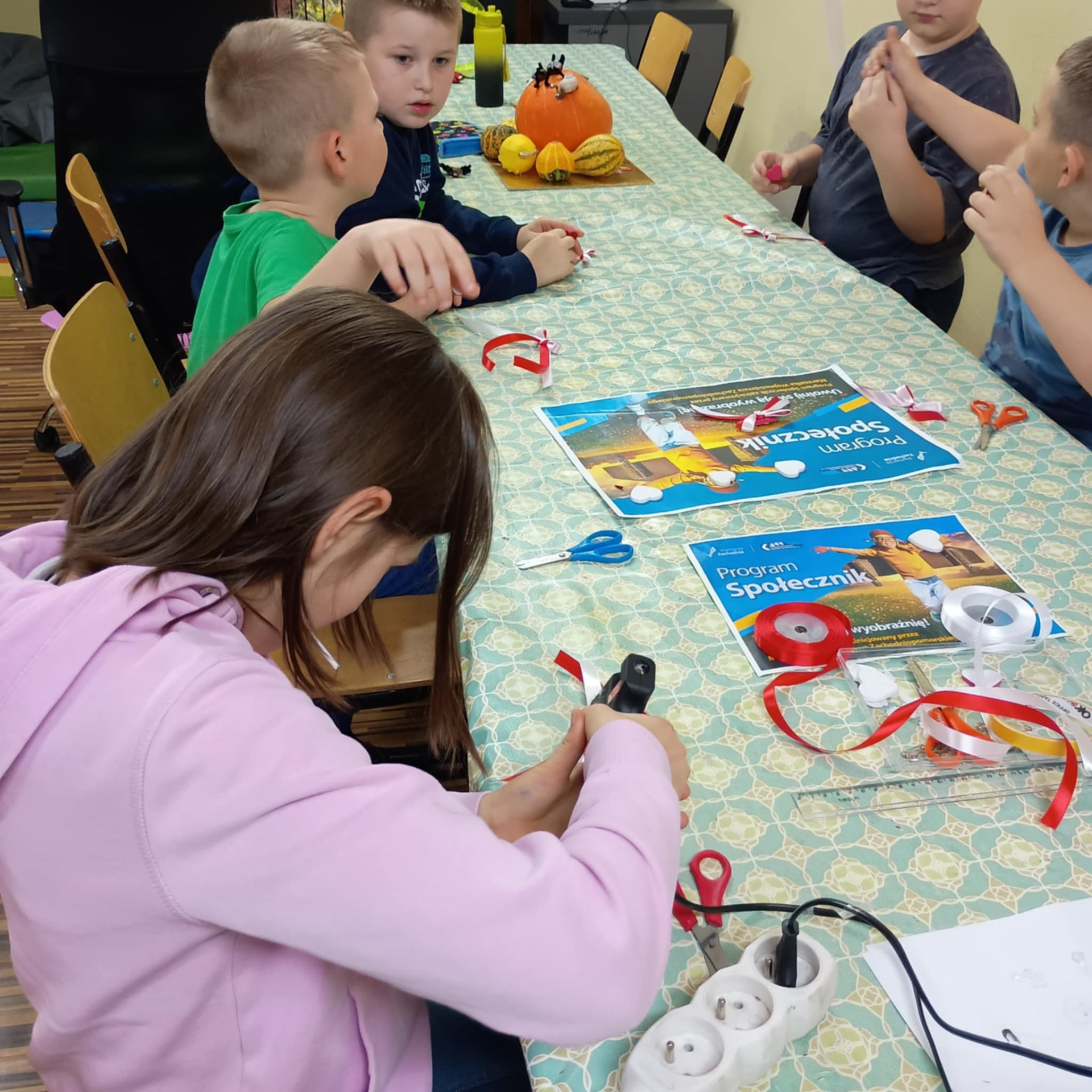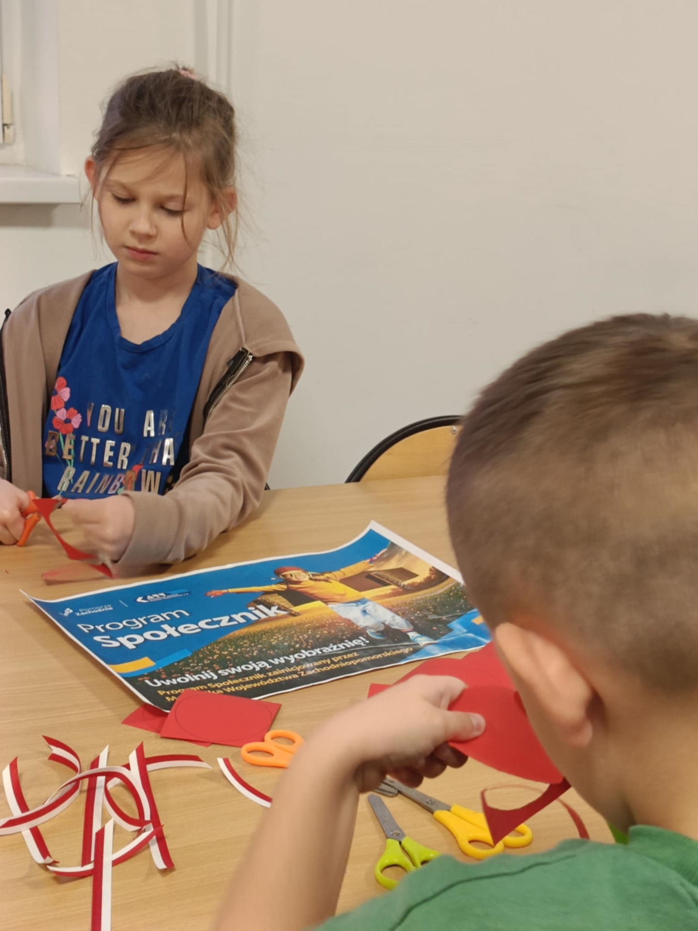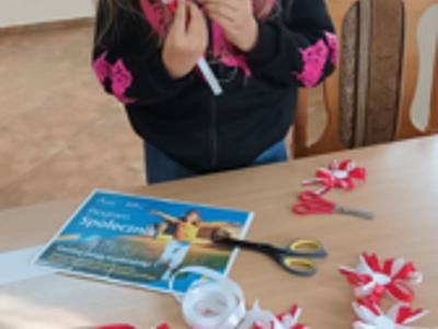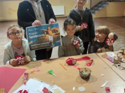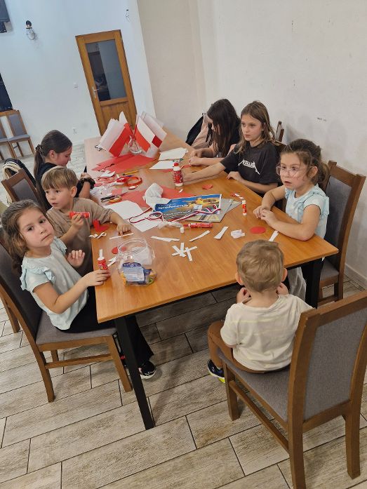 Atmosfera warsztatów była pełna skupienia, przyjaznych rozmów i międzypokoleniowej współpracy. Dzieci z ciekawością poznawały znaczenie narodowych barw, dzieci i młodzież z dumą angażowała się w tworzenie kotylionów, a dorośli dzielili się wspomnieniami o dawnych obchodach 11 listopada. Wspólne działania sprawiły, że edukacja historyczna stała się naturalną częścią twórczej zabawy – inspirującą i pełną ciepła.