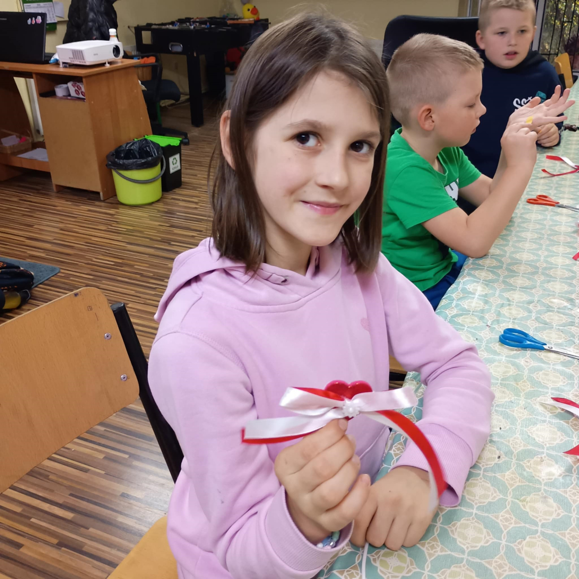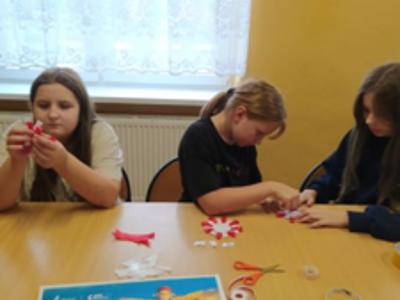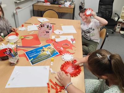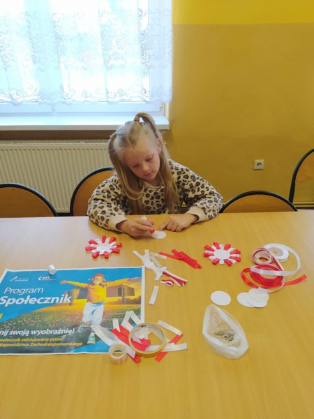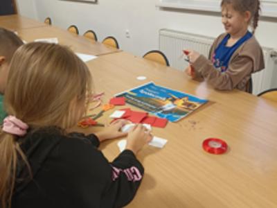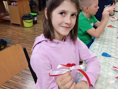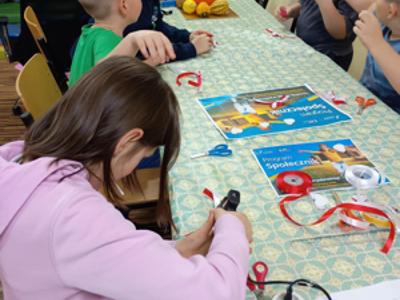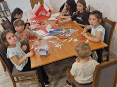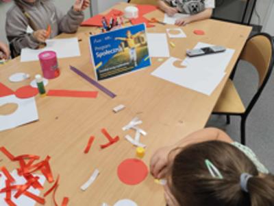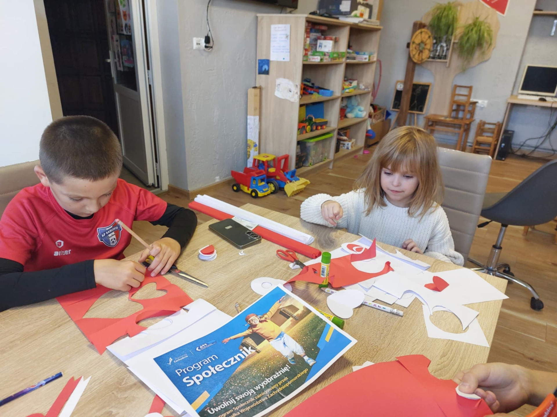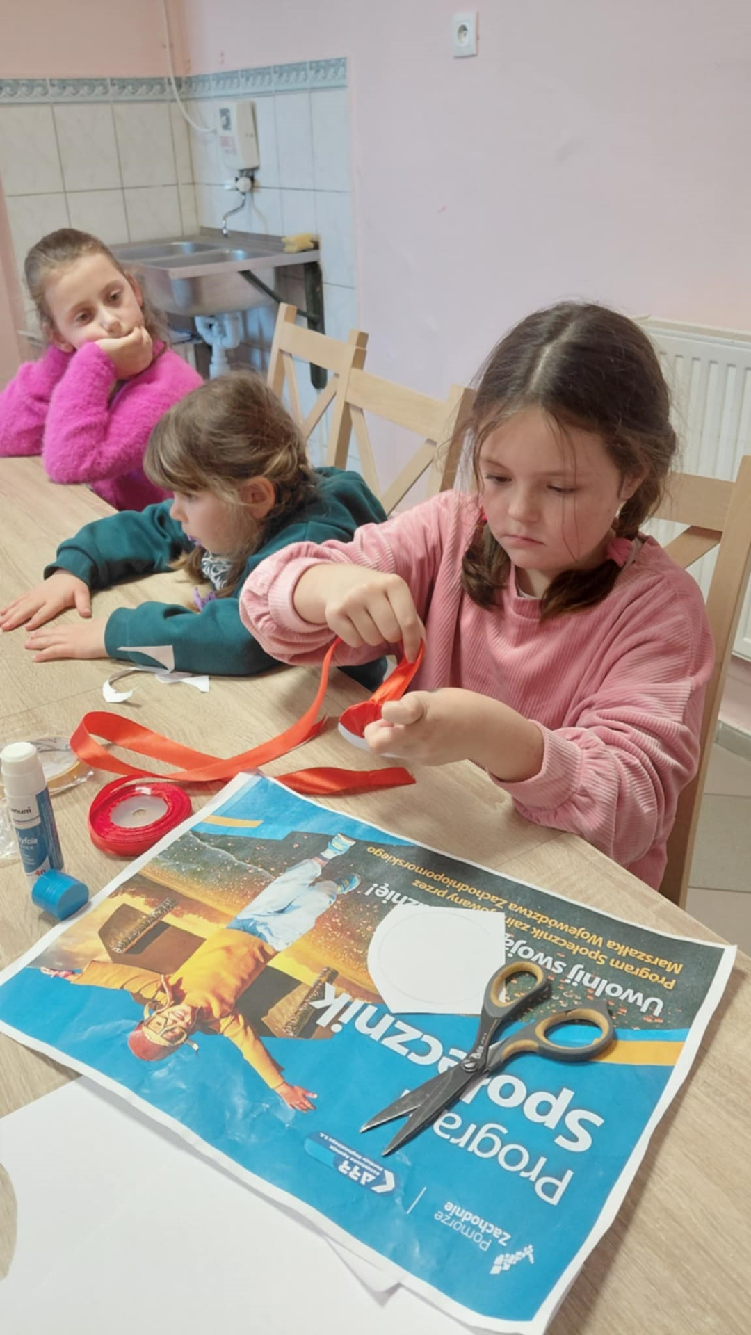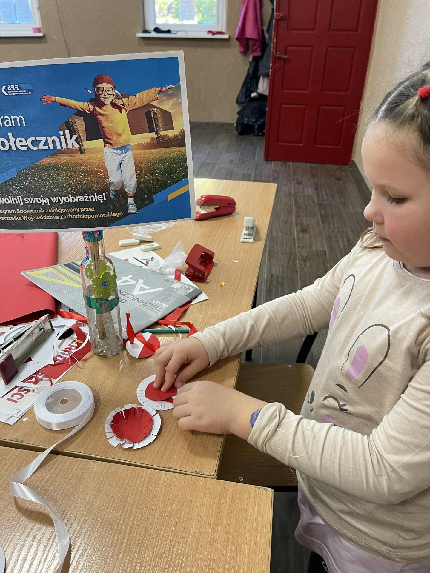 Atmosfera warsztatów była pełna skupienia, przyjaznych rozmów i międzypokoleniowej współpracy. Dzieci z ciekawością poznawały znaczenie narodowych barw, dzieci i młodzież z dumą angażowała się w tworzenie kotylionów, a dorośli dzielili się wspomnieniami o dawnych obchodach 11 listopada. Wspólne działania sprawiły, że edukacja historyczna stała się naturalną częścią twórczej zabawy – inspirującą i pełną ciepła.