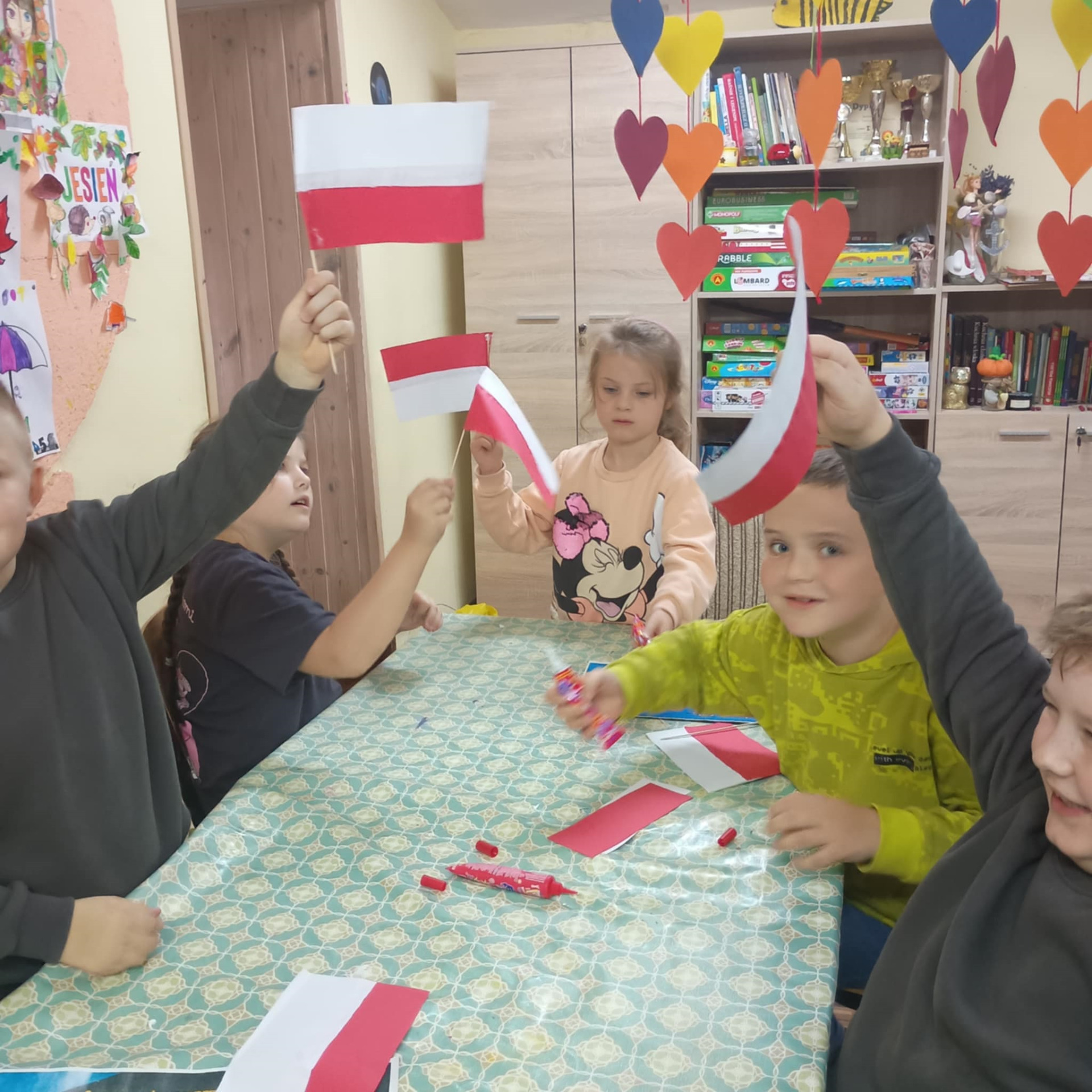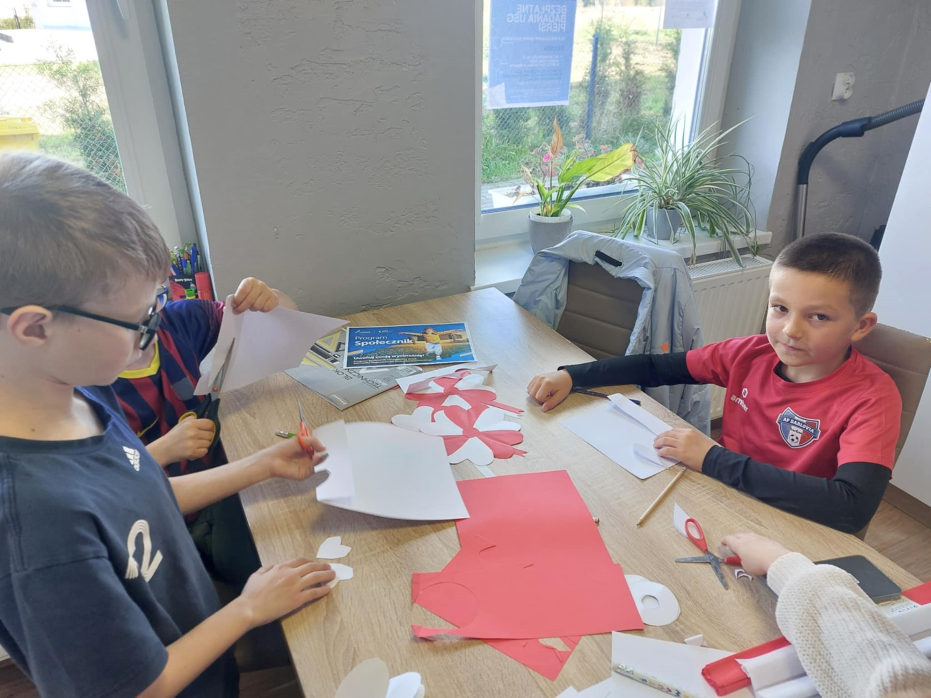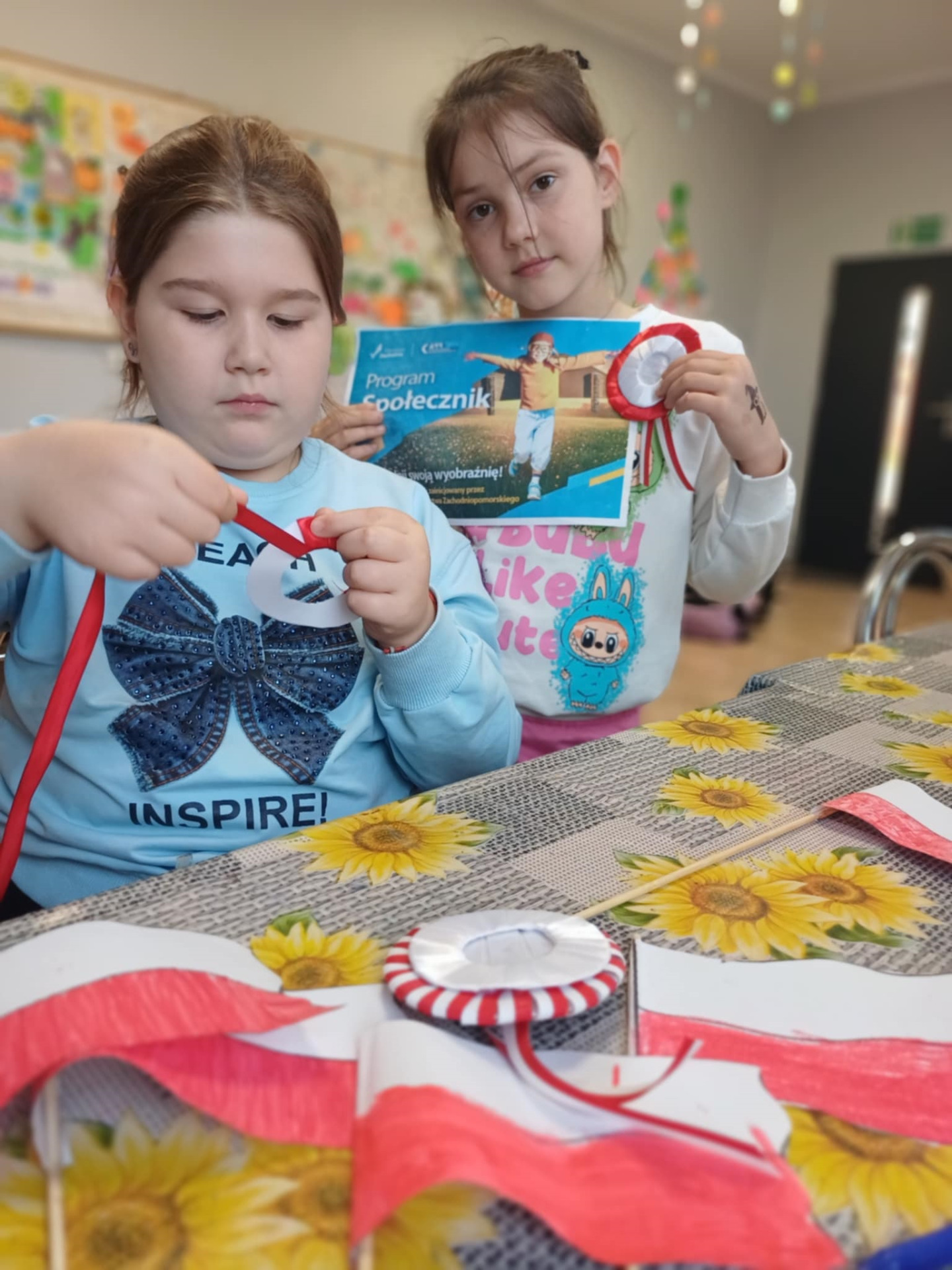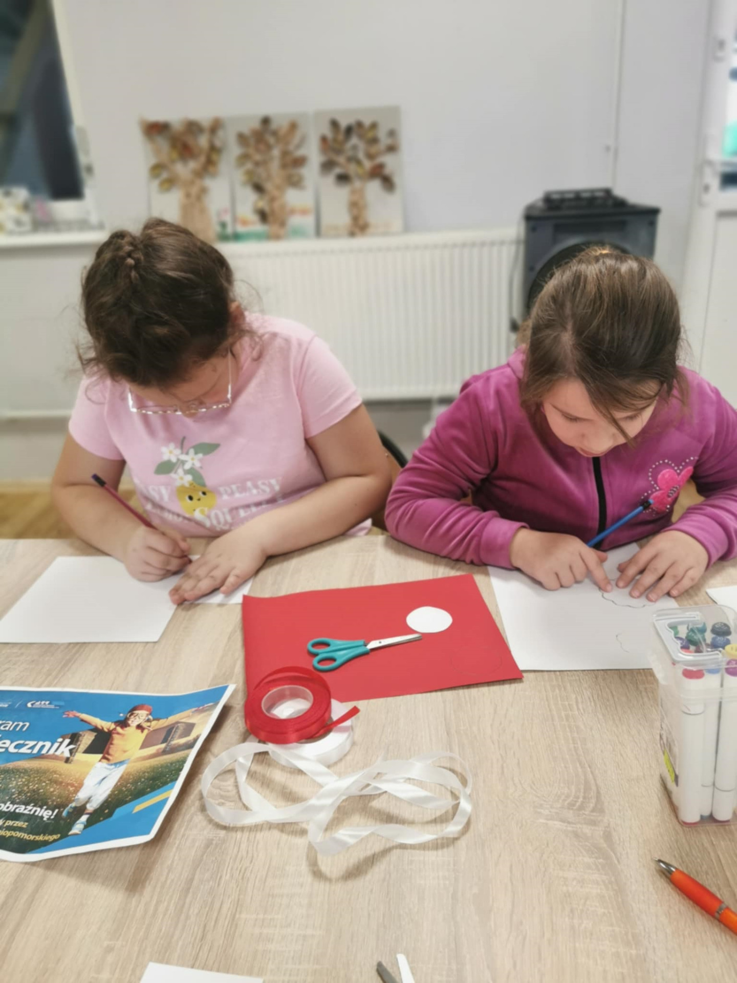 Atmosfera warsztatów była pełna skupienia, przyjaznych rozmów i międzypokoleniowej współpracy. Dzieci z ciekawością poznawały znaczenie narodowych barw, dzieci i młodzież z dumą angażowała się w tworzenie kotylionów, a dorośli dzielili się wspomnieniami o dawnych obchodach 11 listopada. Wspólne działania sprawiły, że edukacja historyczna stała się naturalną częścią twórczej zabawy – inspirującą i pełną ciepła.