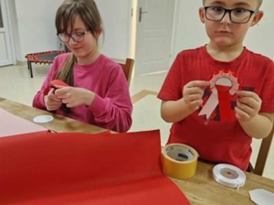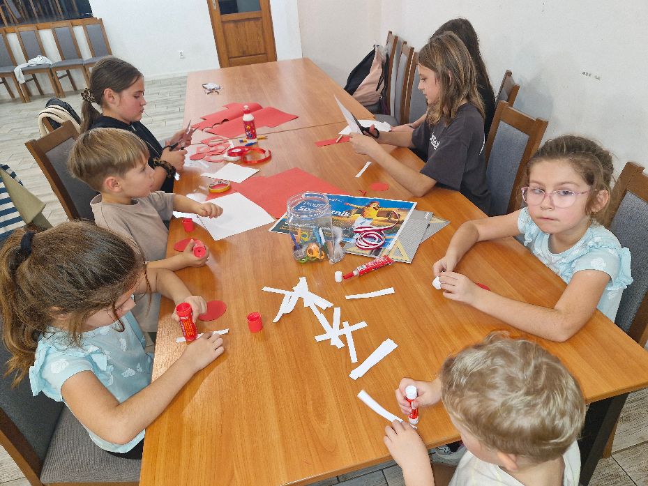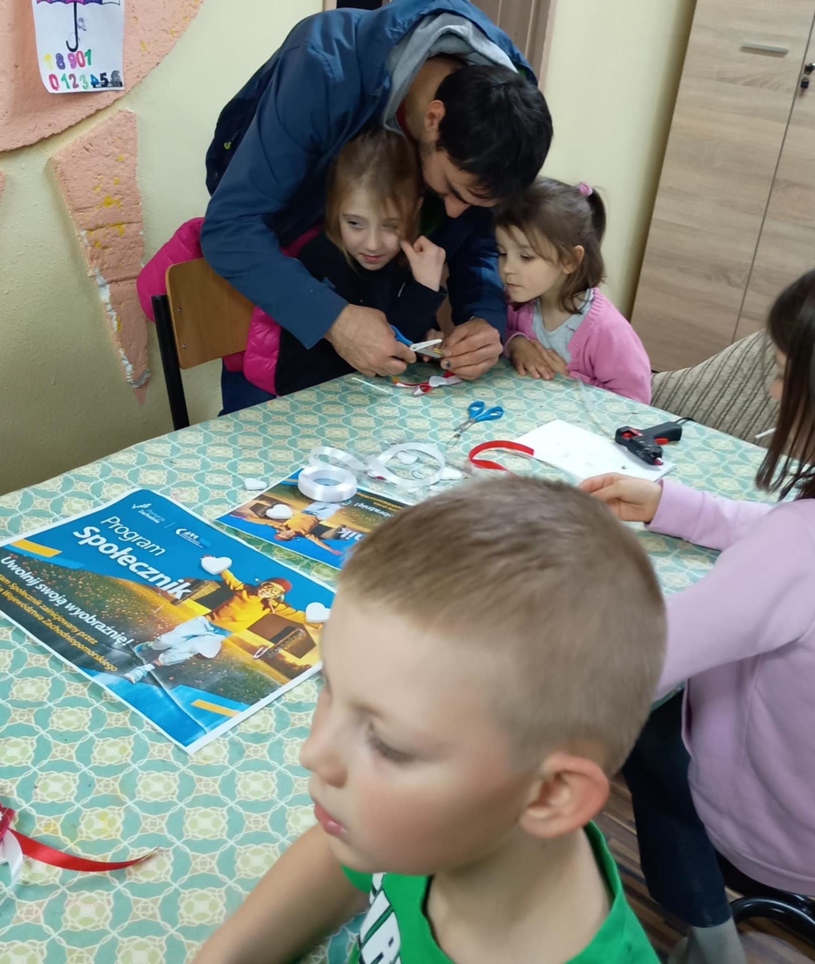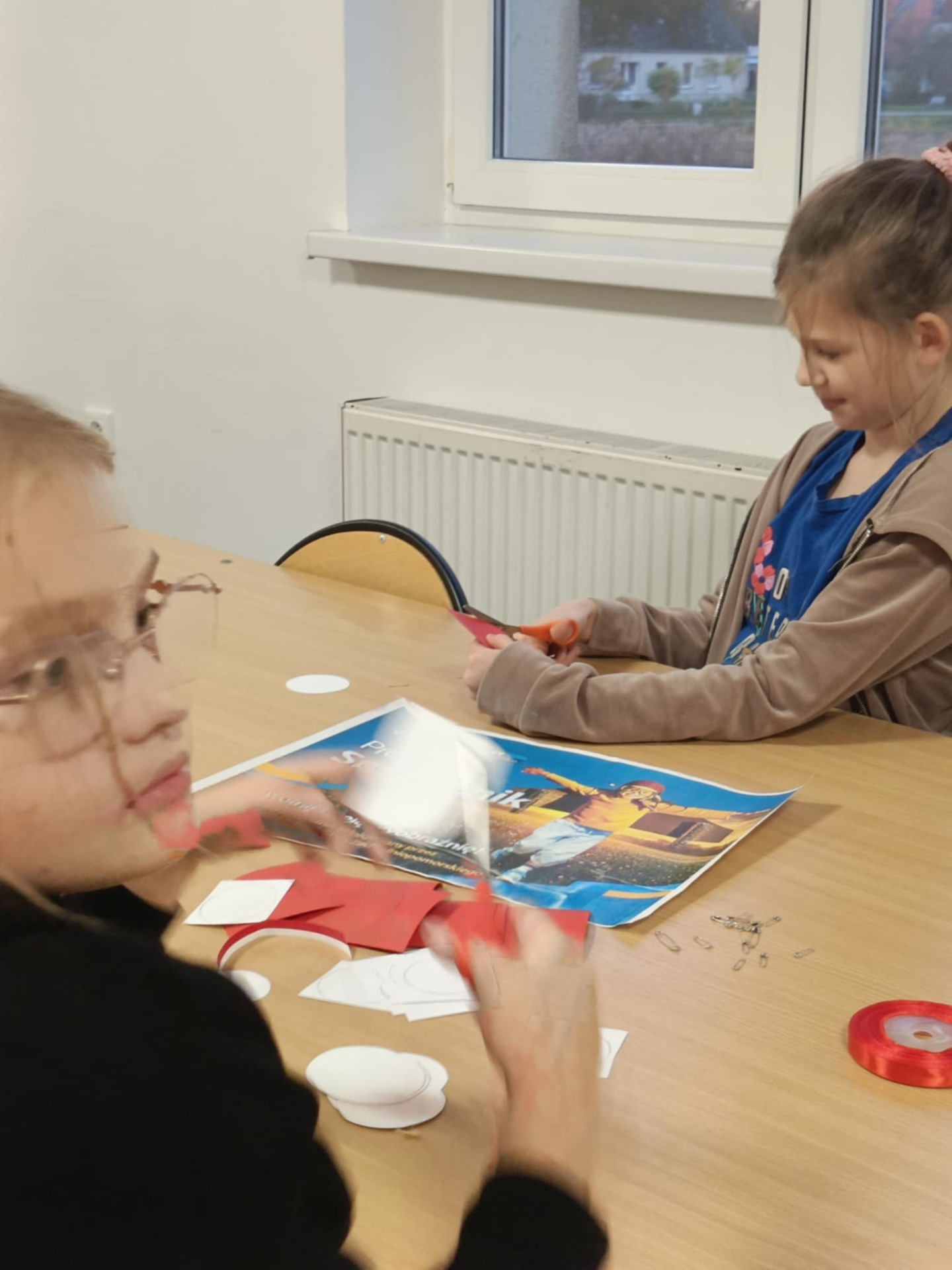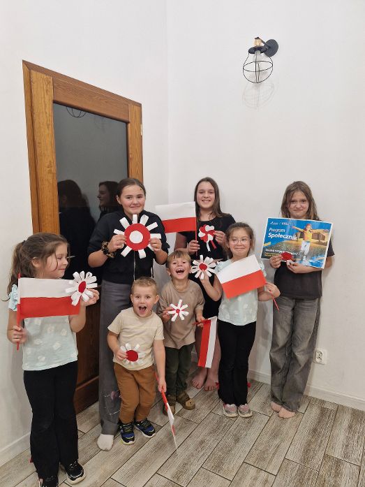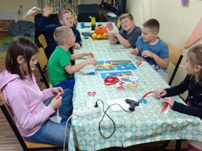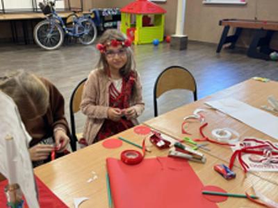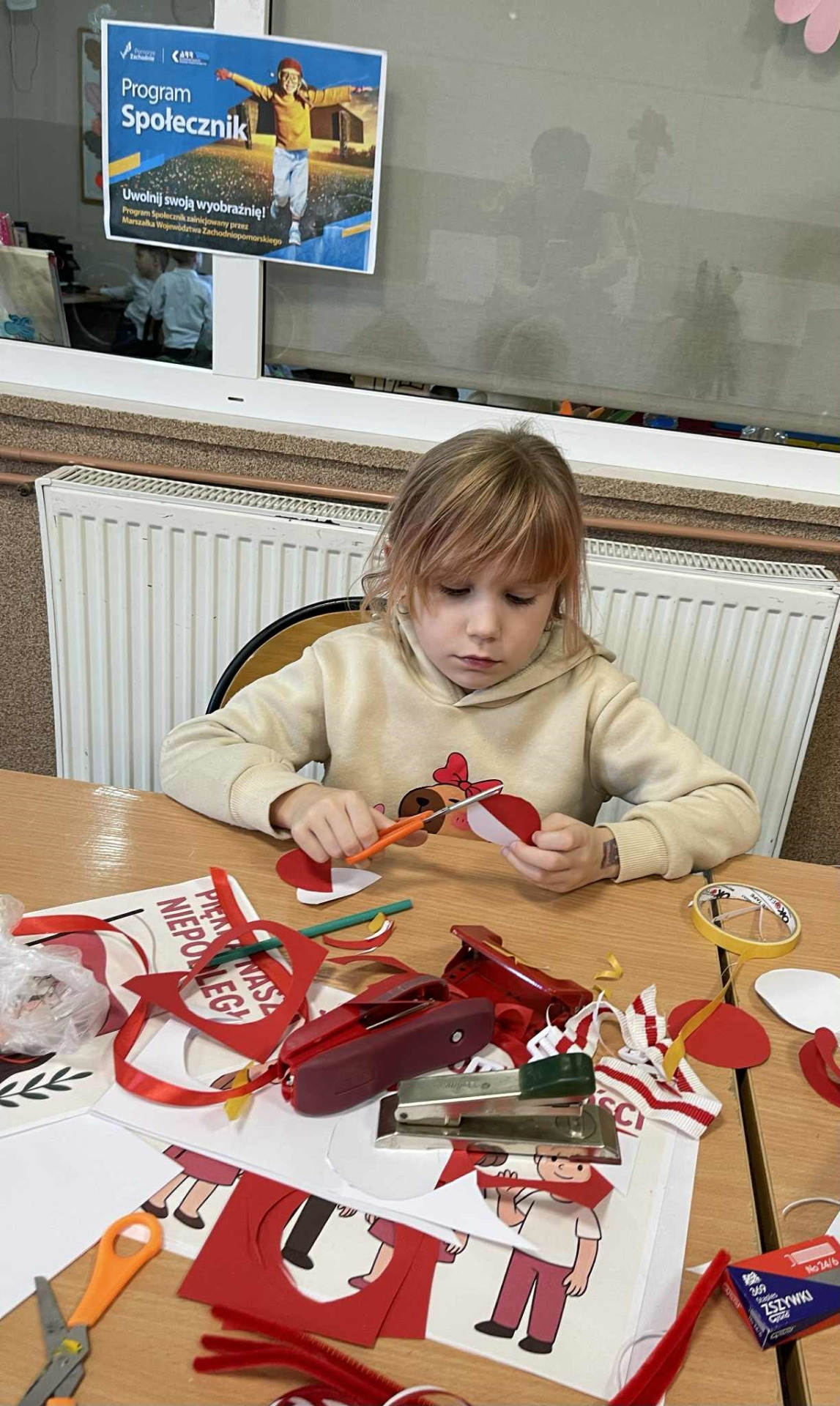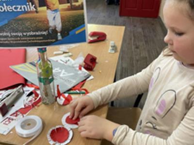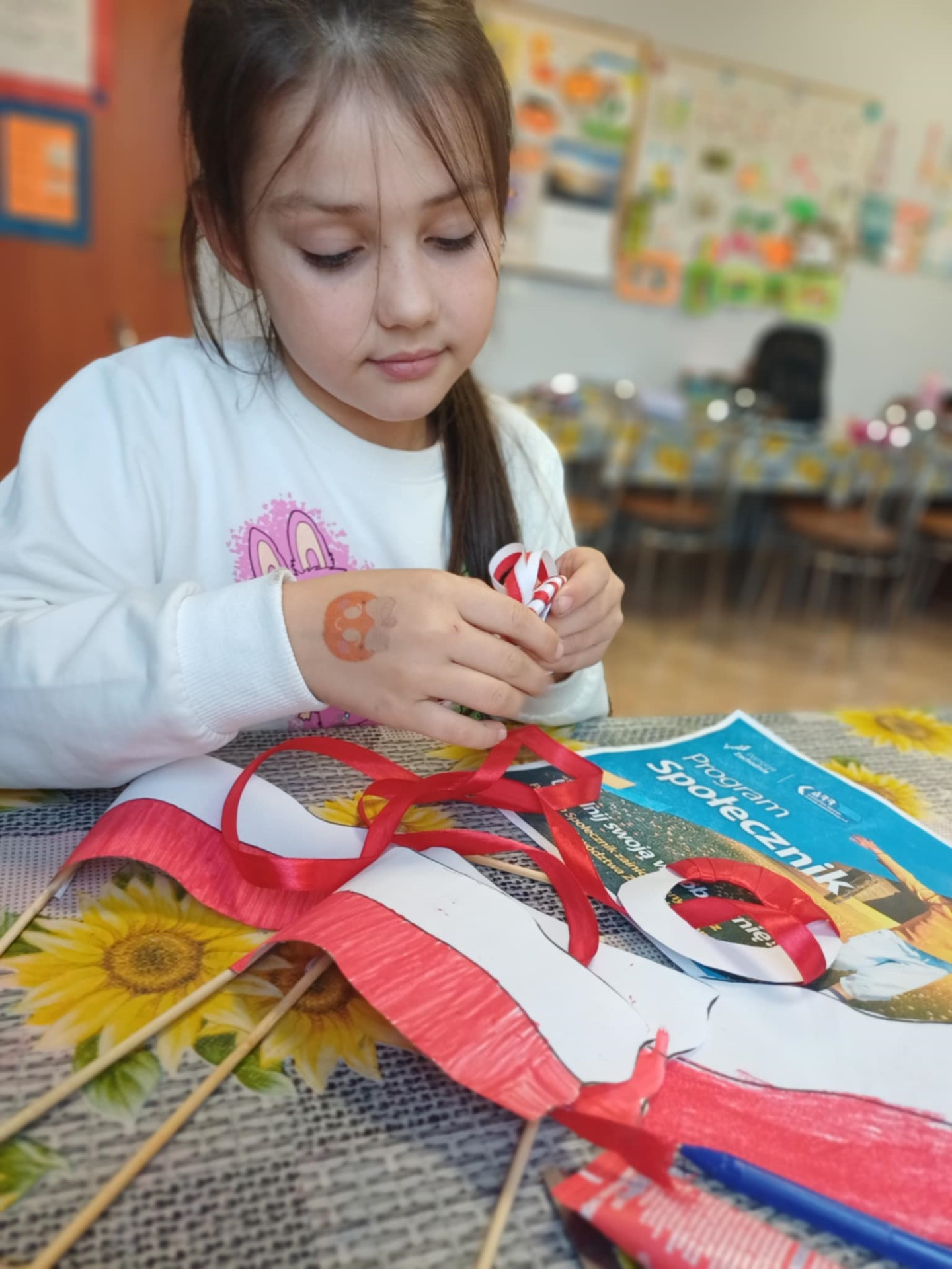 Atmosfera warsztatów była pełna skupienia, przyjaznych rozmów i międzypokoleniowej współpracy. Dzieci z ciekawością poznawały znaczenie narodowych barw, dzieci i młodzież z dumą angażowała się w tworzenie kotylionów, a dorośli dzielili się wspomnieniami o dawnych obchodach 11 listopada. Wspólne działania sprawiły, że edukacja historyczna stała się naturalną częścią twórczej zabawy – inspirującą i pełną ciepła.