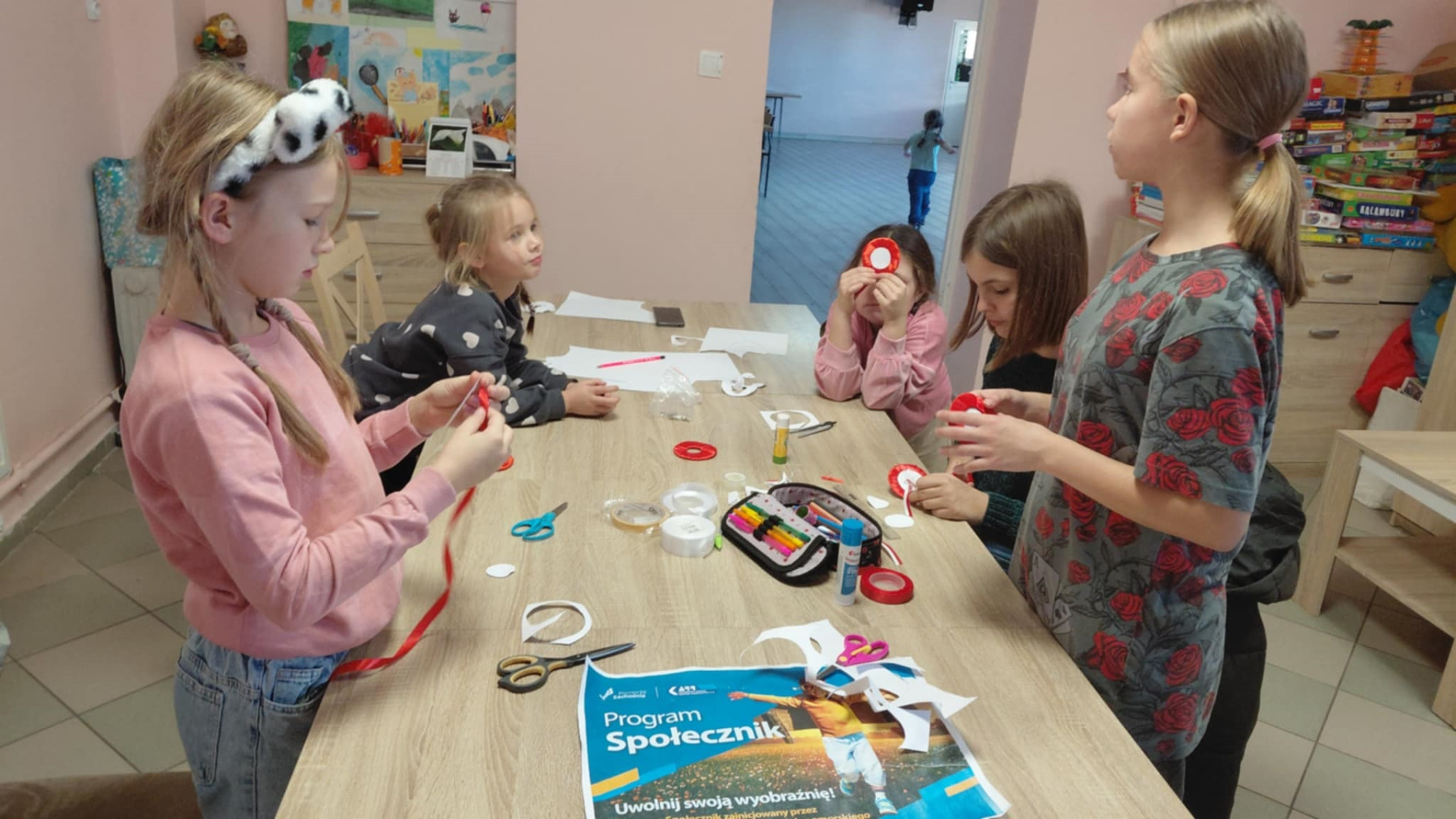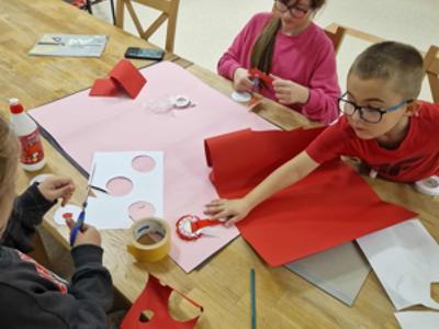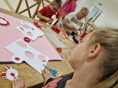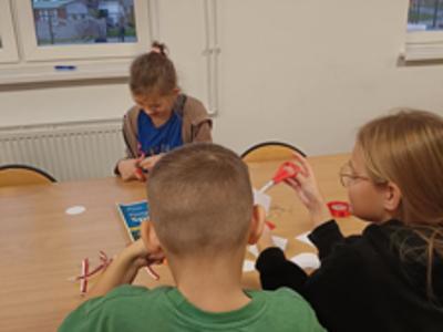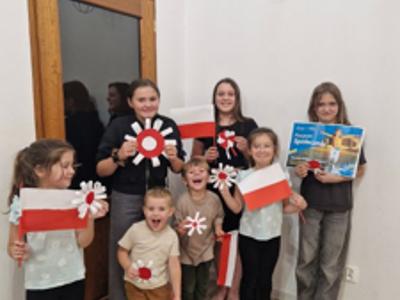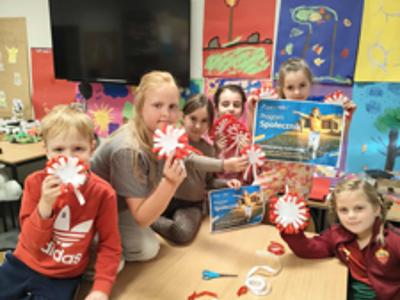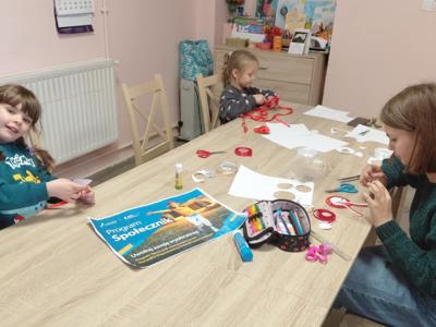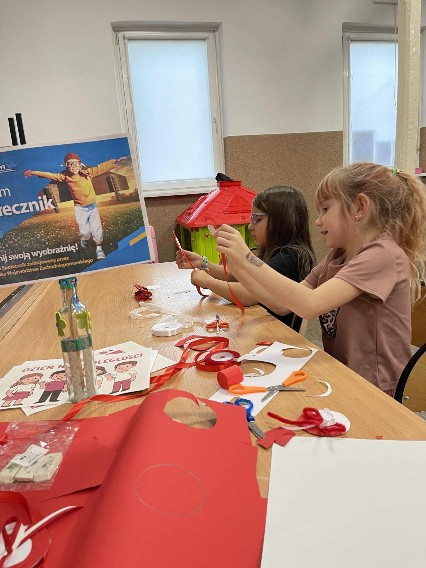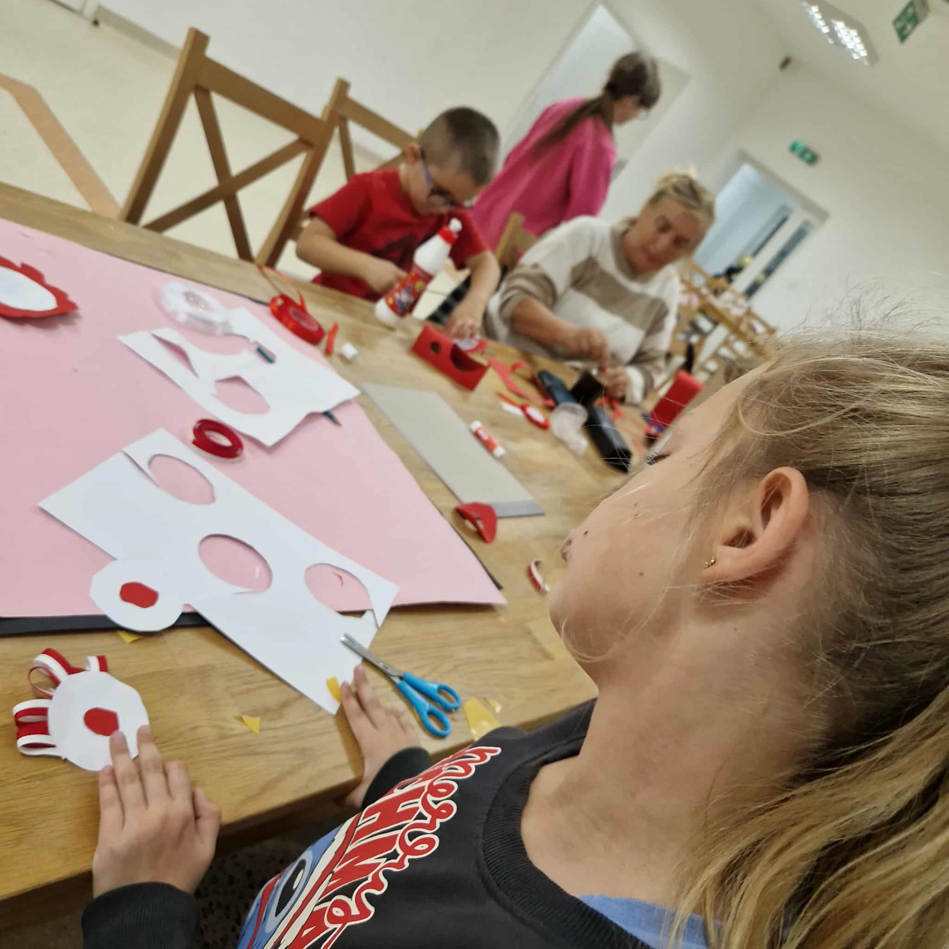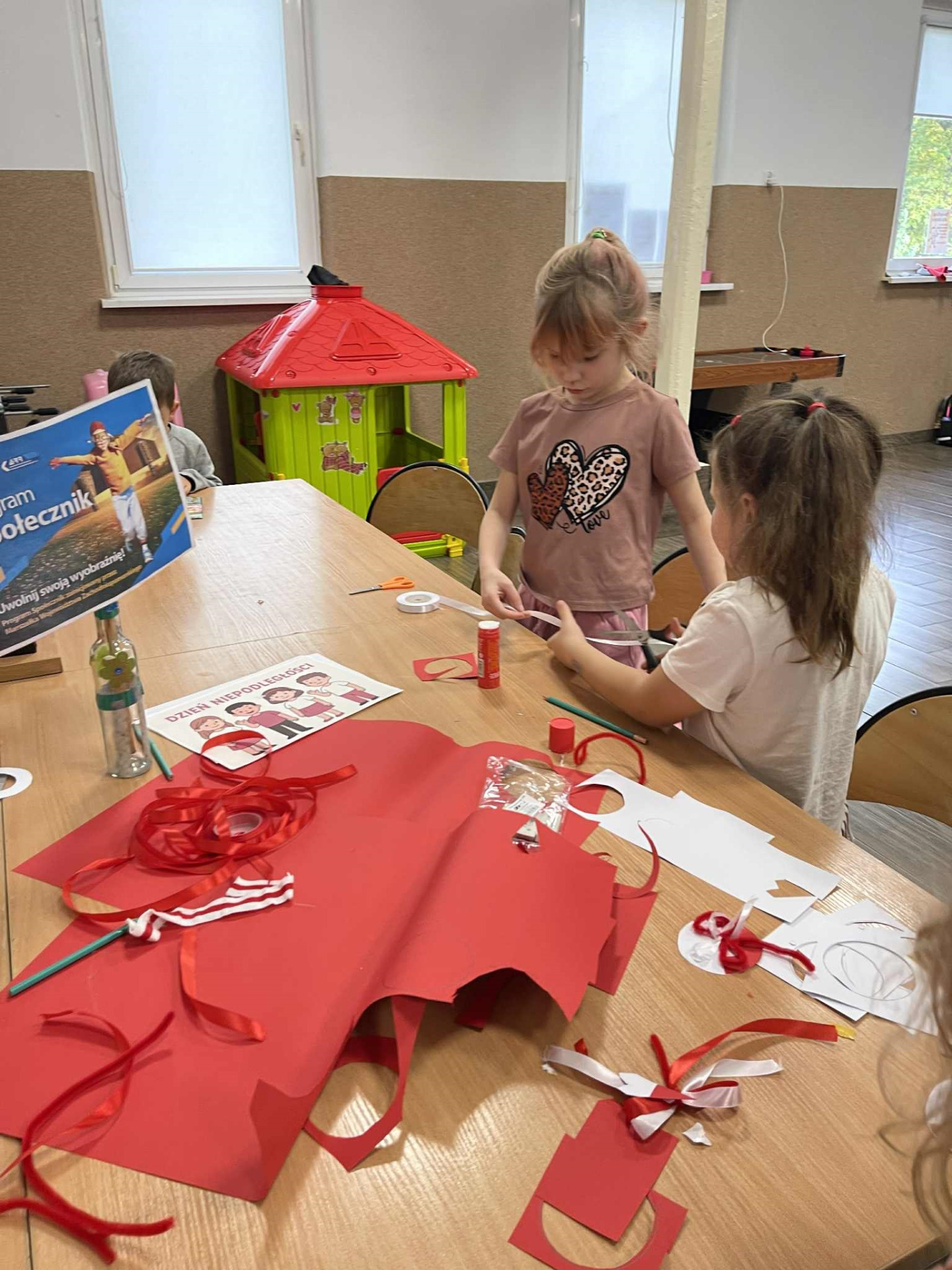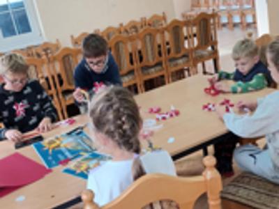 Atmosfera warsztatów była pełna skupienia, przyjaznych rozmów i międzypokoleniowej współpracy. Dzieci z ciekawością poznawały znaczenie narodowych barw, dzieci i młodzież z dumą angażowała się w tworzenie kotylionów, a dorośli dzielili się wspomnieniami o dawnych obchodach 11 listopada. Wspólne działania sprawiły, że edukacja historyczna stała się naturalną częścią twórczej zabawy – inspirującą i pełną ciepła.