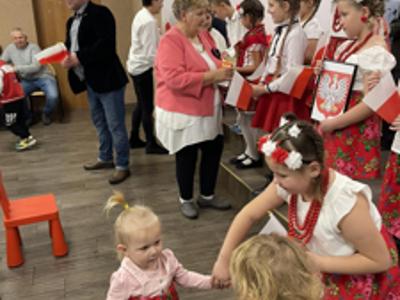 W Krupach patriotyzm połączono z życzliwością i tradycją wspólnego stołu. Panie świetliczanki przygotowały pachnące rogaliki, którymi częstowano przechodniów pod kościołem, szerząc ideę świętowania poprzez dobroć i wspólnotę. Świetlice w Krupach i Zielnowie połączyły siły, by przy ognisku zaśpiewać piosenki patriotyczne, tworząc wzruszającą, pełną ciepła atmosferę.