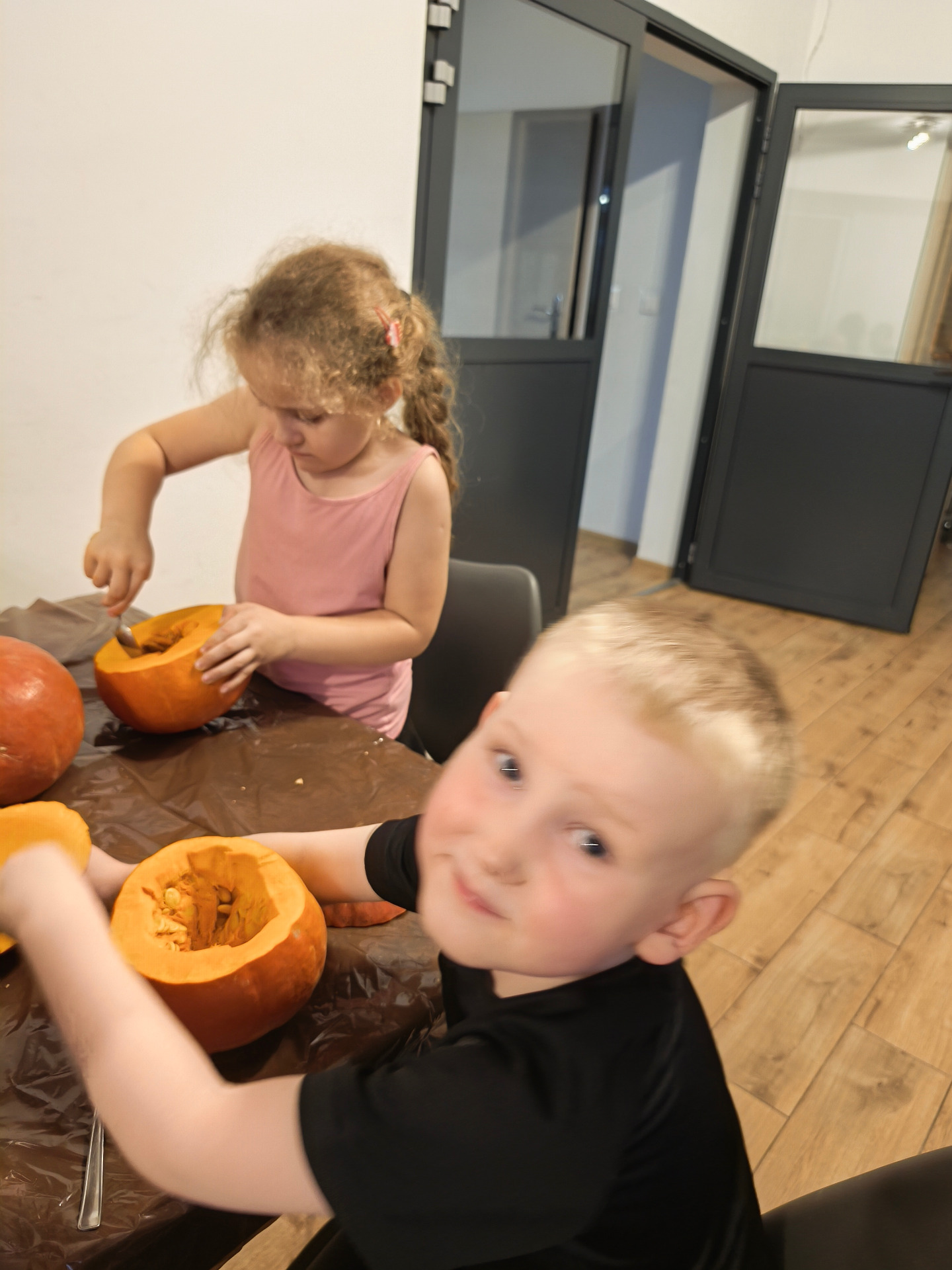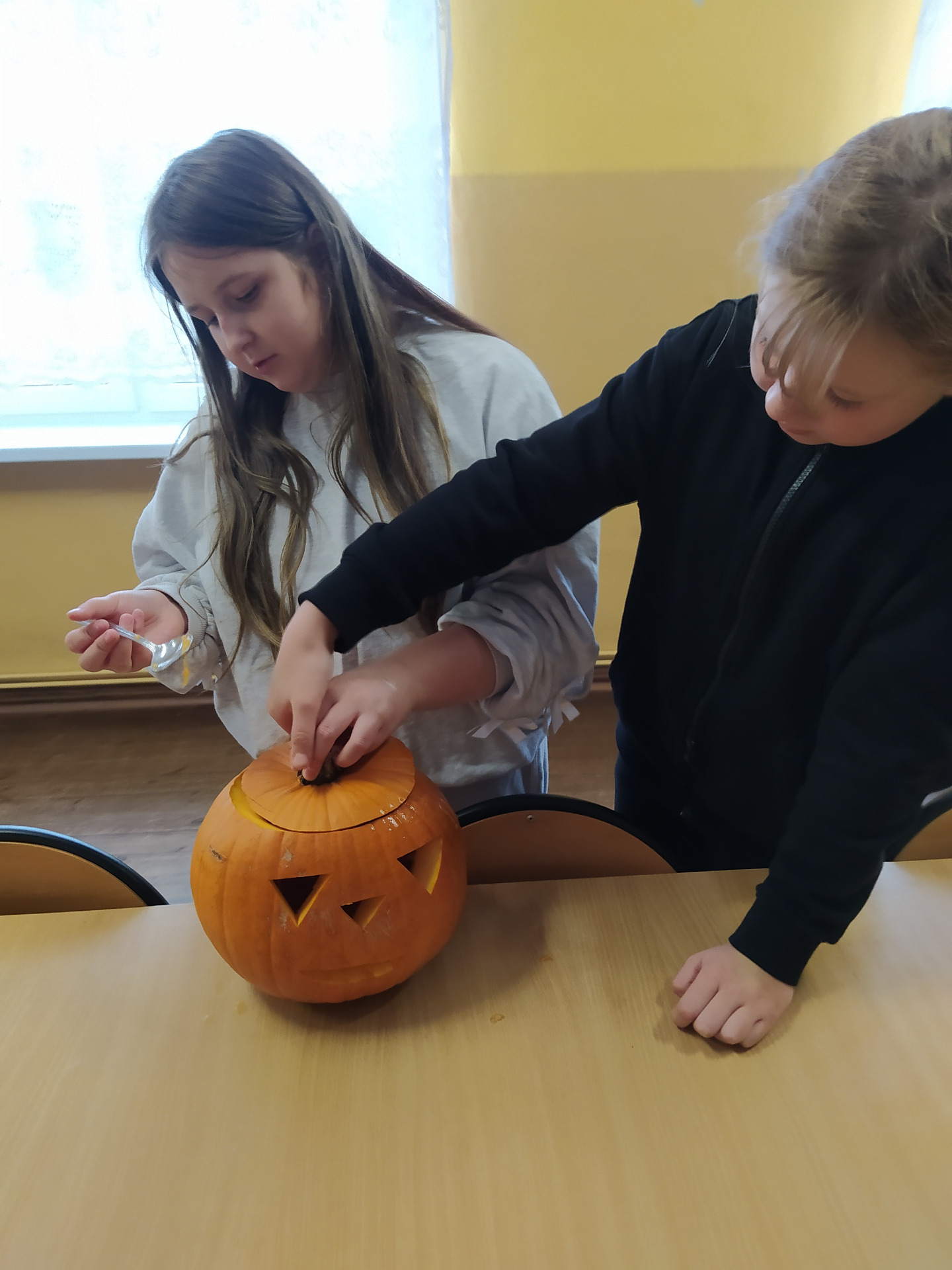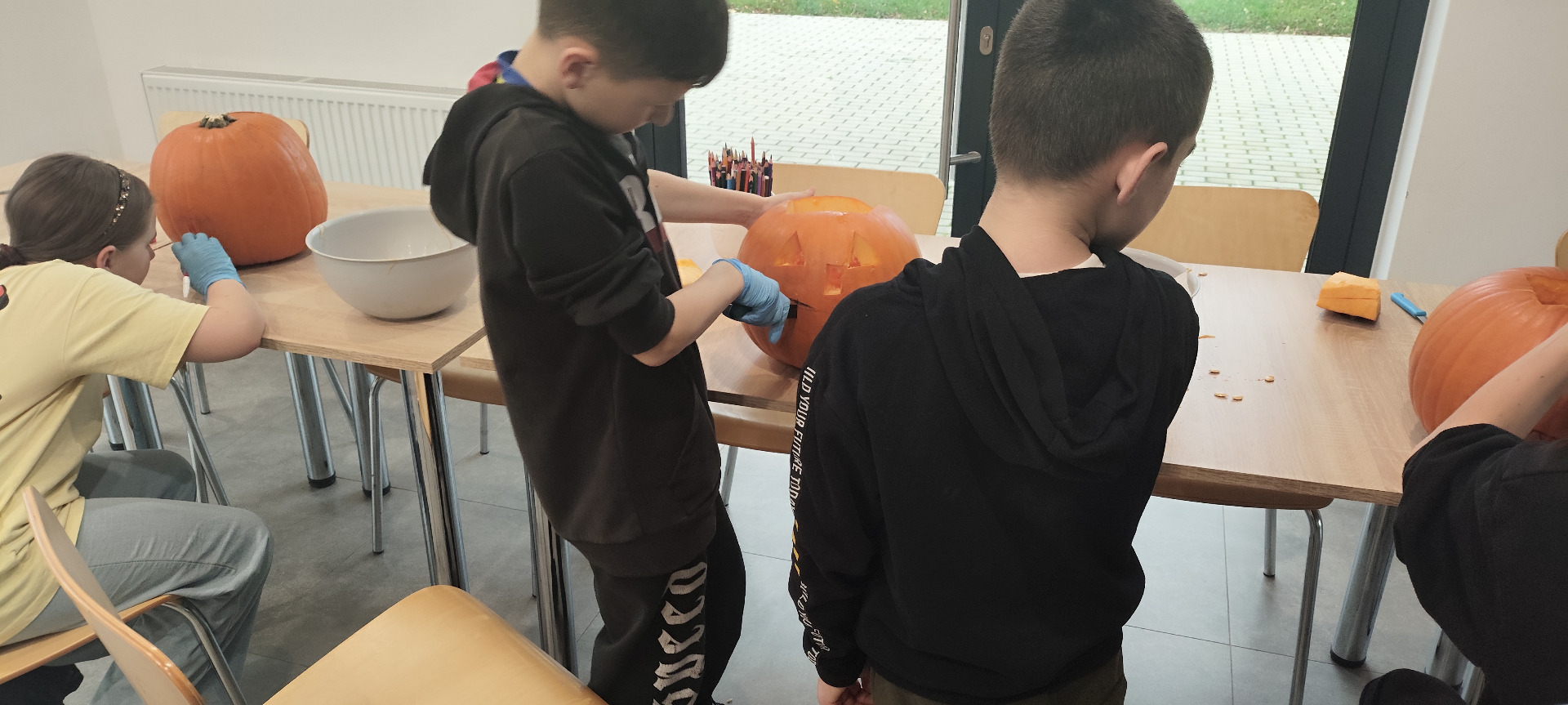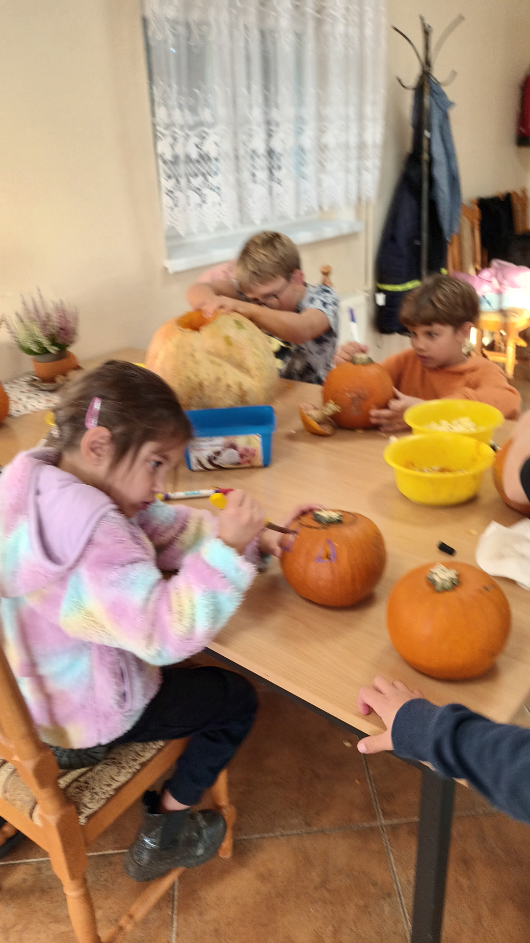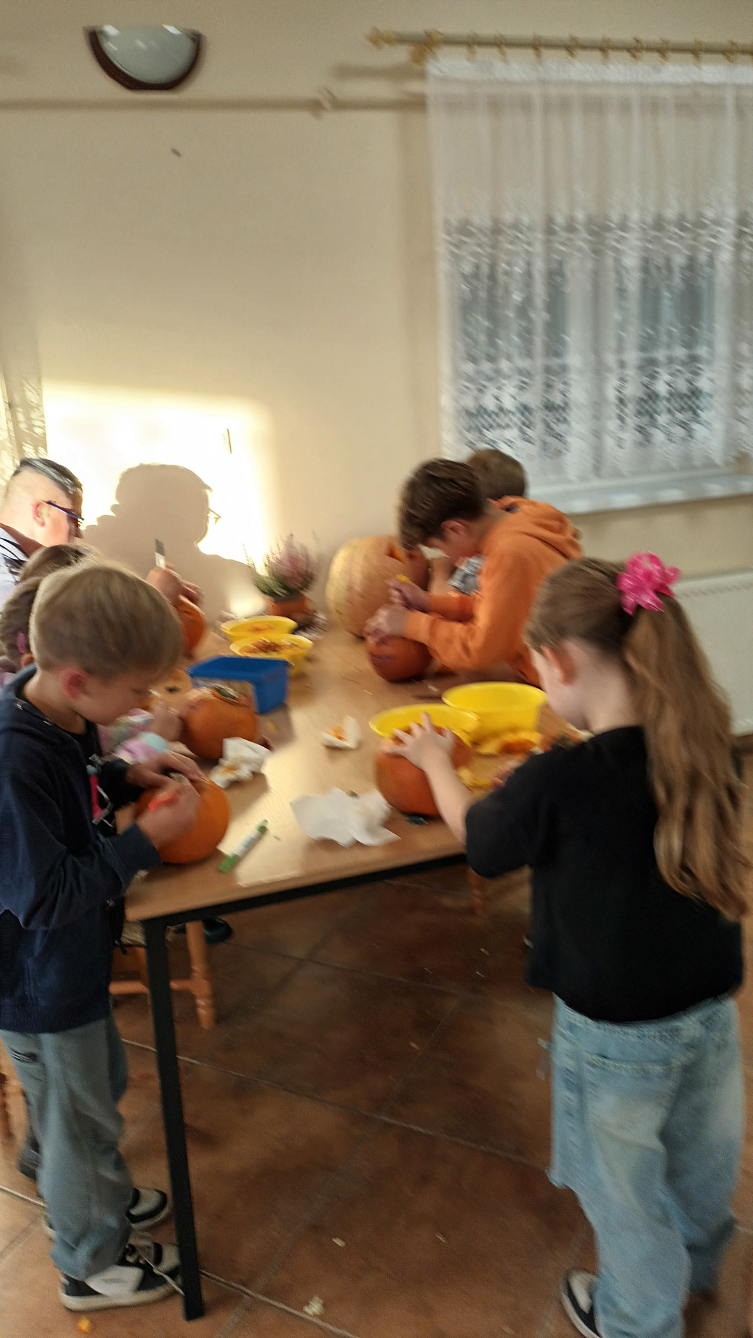 Sale ozdobiono własnoręcznie przygotowanymi dekoracjami: girlandami z liści, lampionami, jesiennymi stroikami i oczywiście – dyniowymi rzeźbami. Kreatywność uczestników nie miała granic: pojawiły się śmieszne dyniowe buźki, fantazyjnie wycinane lampiony i malowane dynie, które stały się prawdziwymi mini dziełami sztuki.