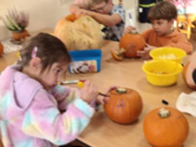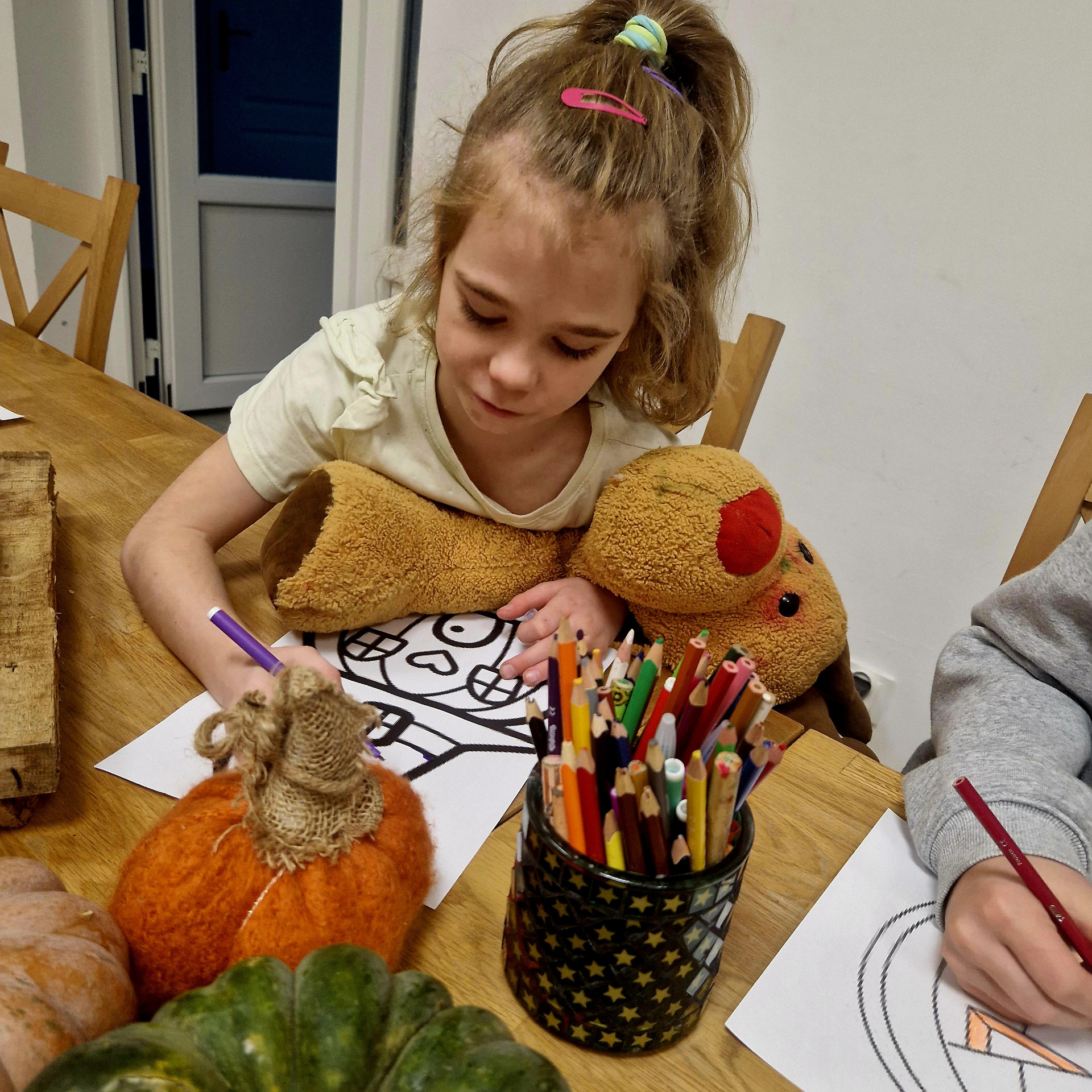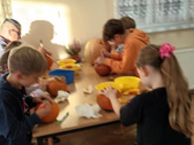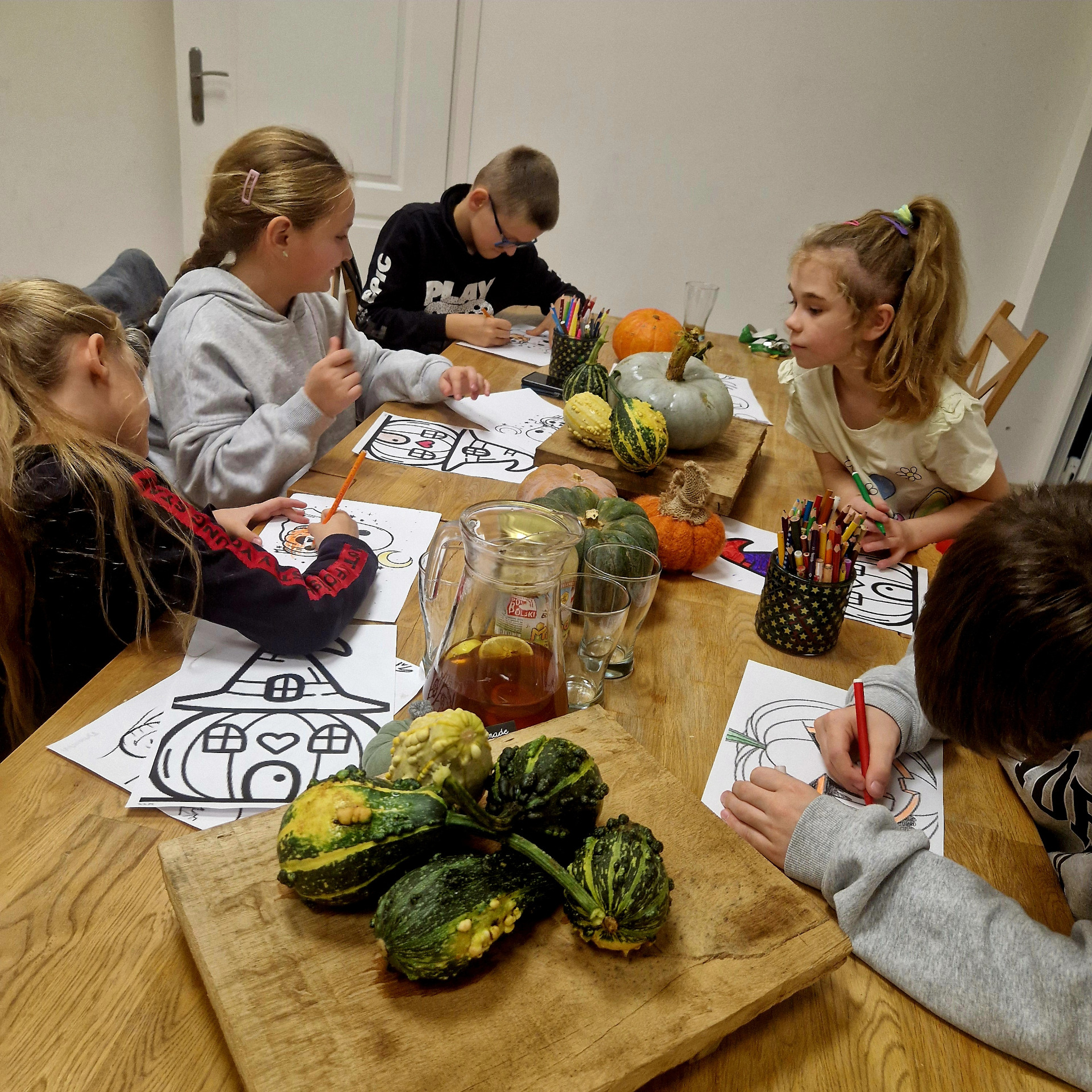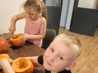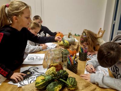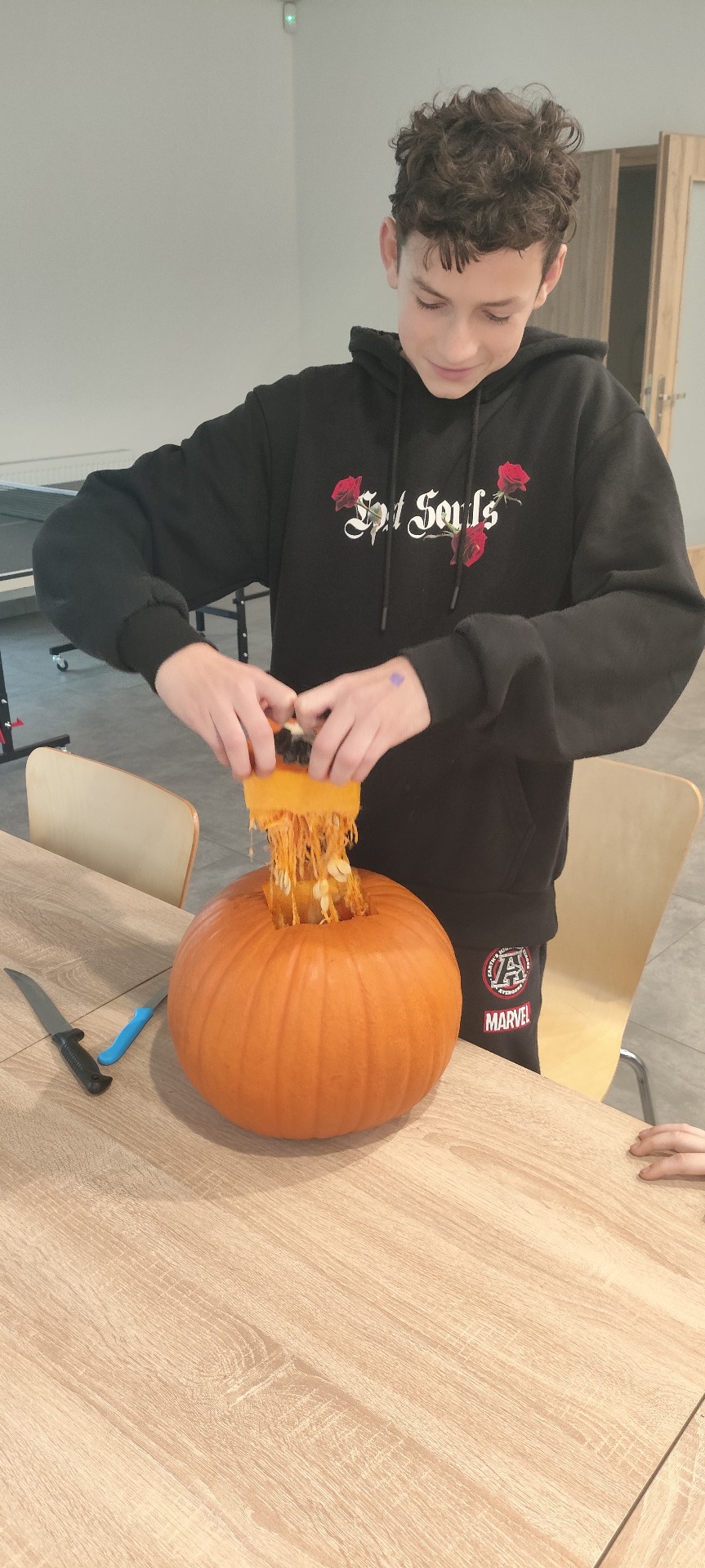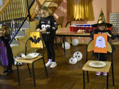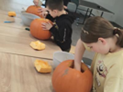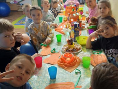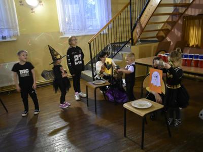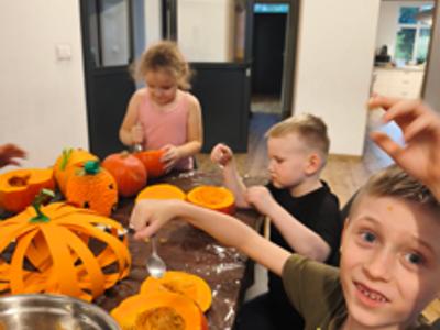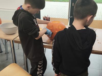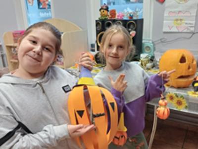 Sale ozdobiono własnoręcznie przygotowanymi dekoracjami: girlandami z liści, lampionami, jesiennymi stroikami i oczywiście – dyniowymi rzeźbami. Kreatywność uczestników nie miała granic: pojawiły się śmieszne dyniowe buźki, fantazyjnie wycinane lampiony i malowane dynie, które stały się prawdziwymi mini dziełami sztuki.