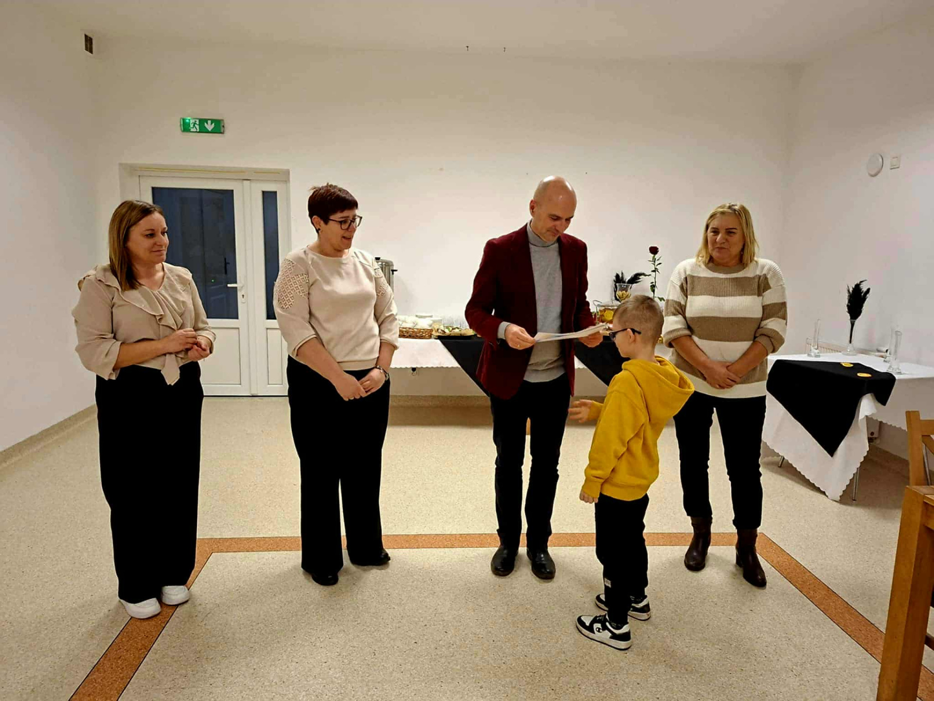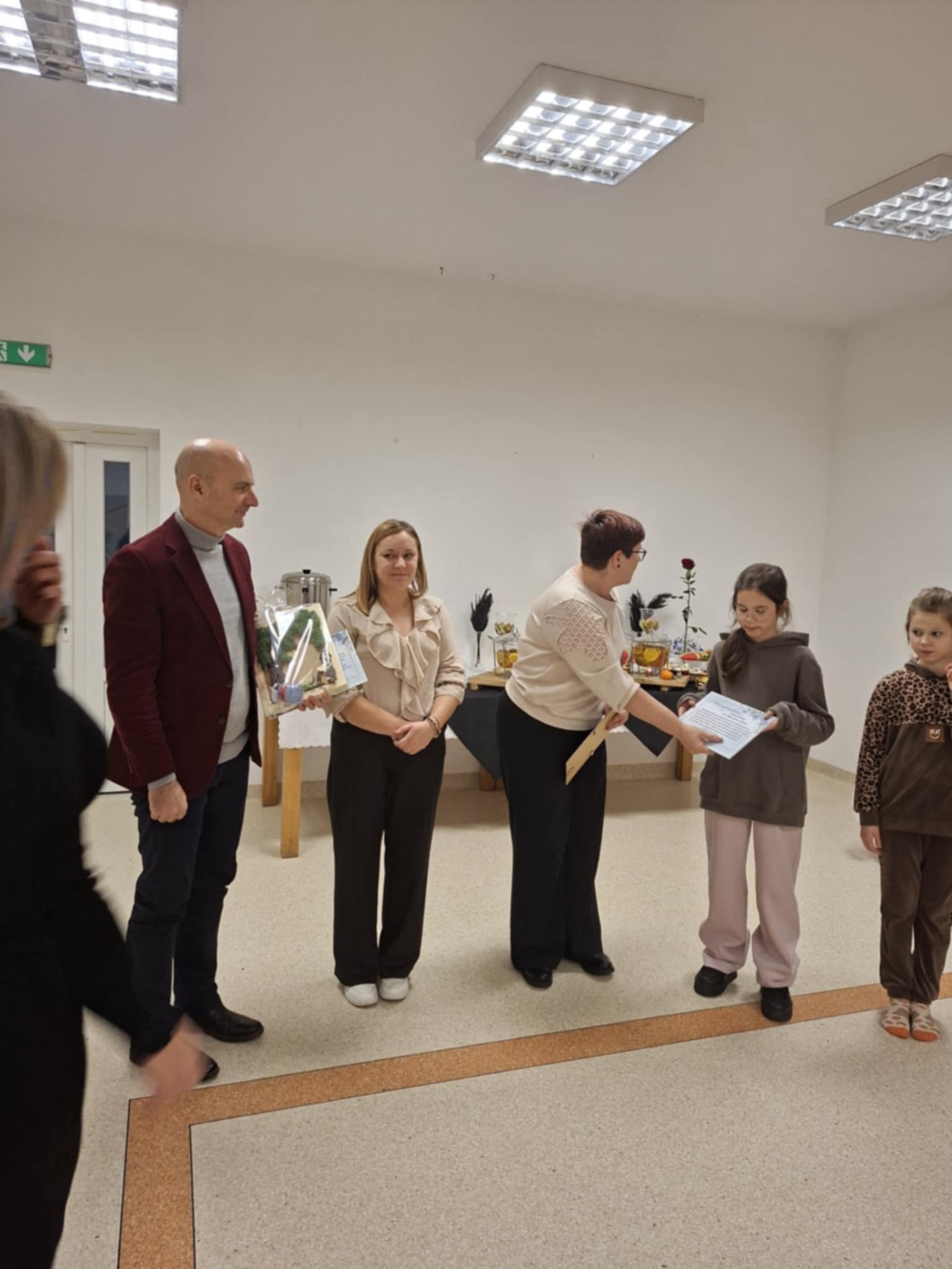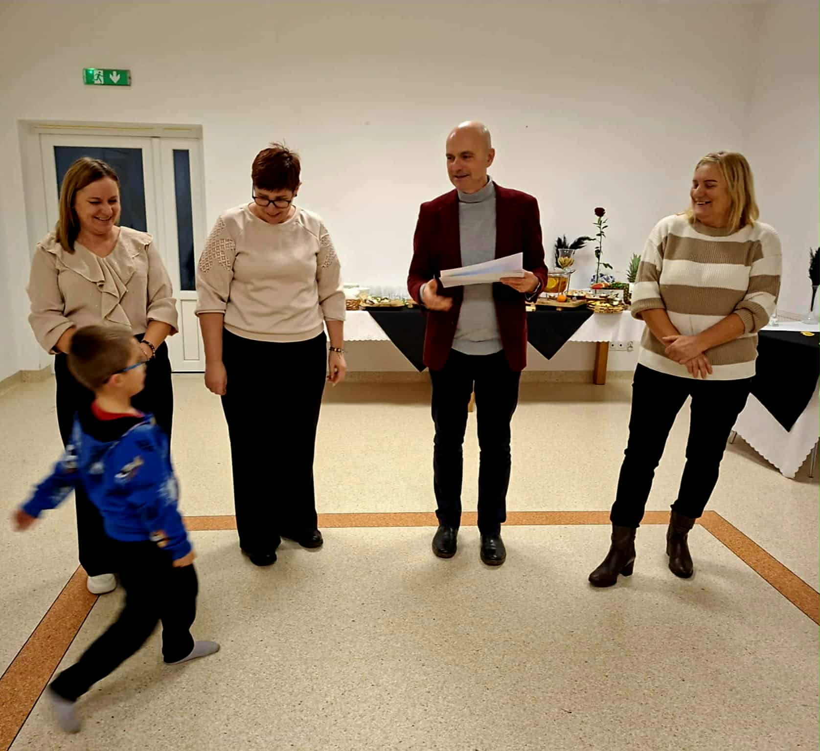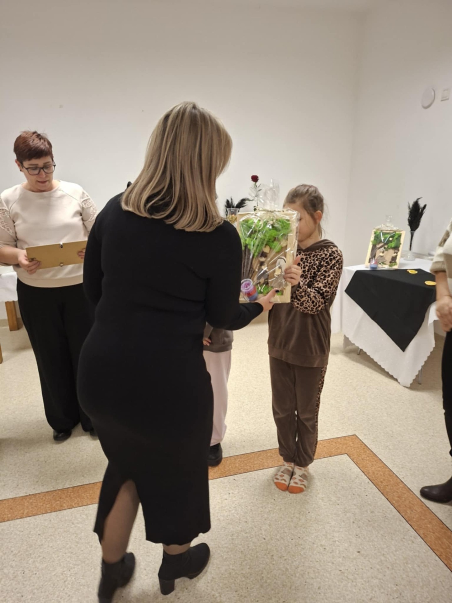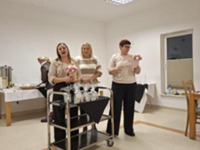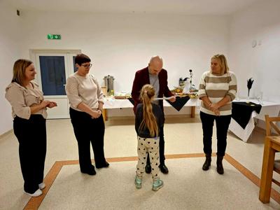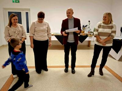 Zakończenie projektu miało nietypowy charakter, bowiem po częsci oficjalnej poproszono zaproszonych gości, by usiedli wśród dzieci i oddano głos Elżbiecie Betlińskiej, Prezesce Klubu Amazonki, która przybliżyła ideę inicjatywy Onkomikołajki. Jej wystąpienie wprowadziło uczestników w tematykę wsparcia pacjentów onkologicznych i pokazało, jak ważne są działania niosące nadzieję i otuchę, w których rokrocznie uczestniczą przedstawiciele Amazonek i samorządu gminnego.