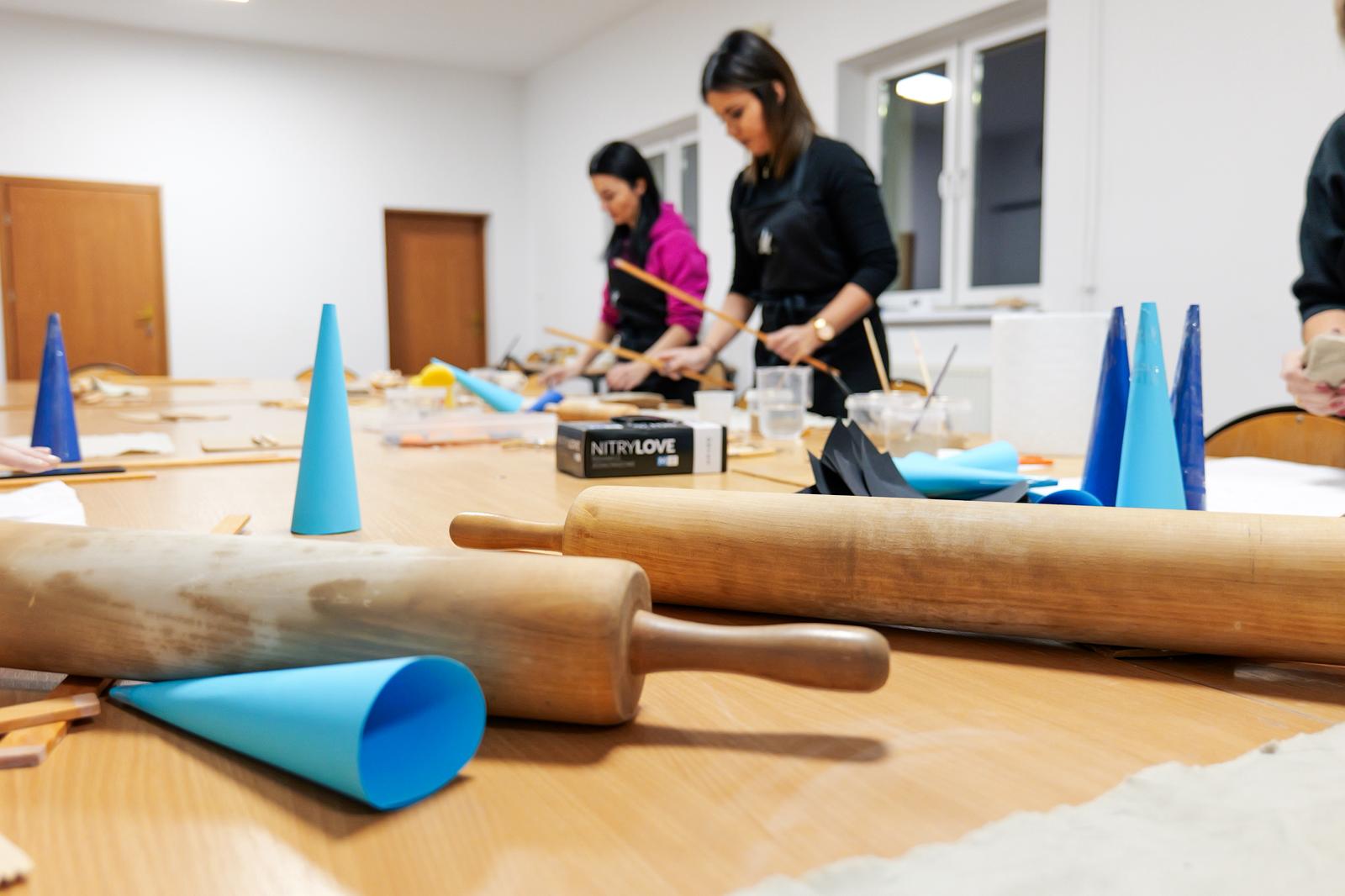 W dniu 3 grudnia 2025 r. w Pracowni Ceramicznej „Ważka” odbyła się inauguracja zajęć dla osób dorosłych. W przestrzeni wypełnionej zapachem gliny, ciepłem dłoni i twórczą atmosferą spotkały się dwie grupy kobiet gotowych spróbować swoich sił w pracy z ceramiką. Tematem pierwszych zajęć były anielice – delikatne, symboliczne formy, które każda z uczestniczek mogła zinterpretować po swojemu.