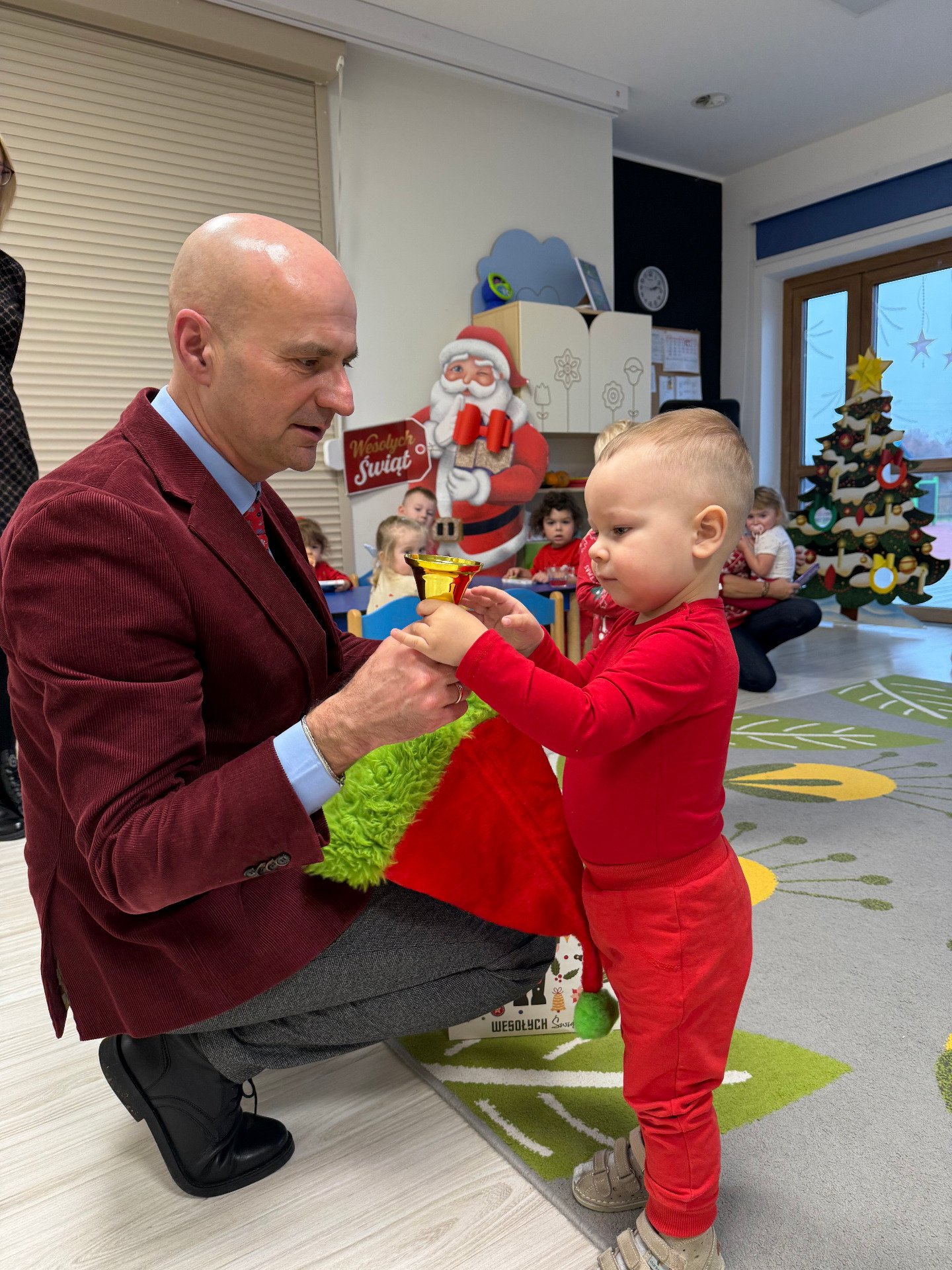 Dziś Wójt Radosław Głażewski odwiedził najmłodszych mieszkańców naszej gminy, by wspólnie świętować radosny dzień Mikołajek. W żłobku panowała wyjątkowo ciepła, świąteczna atmosfera, a w spotkaniu uczestniczyły dwie grupy maluchów: Pszczółki i Żabki. Radości było co niemiara — uśmiechy, zaciekawione spojrzenia i dziecięcy entuzjazm wypełniły całe wnętrze!