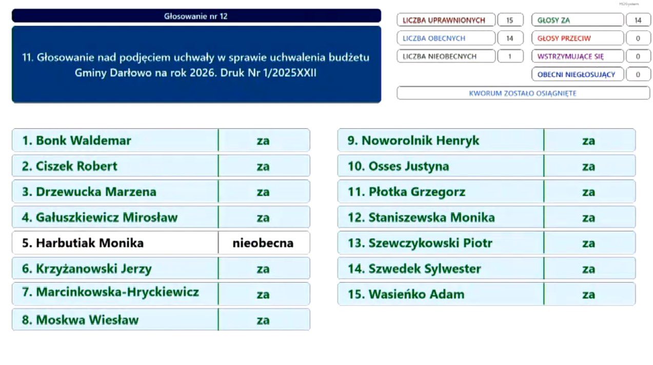 – Dziękuję Radzie Gminy Darłowo za uchwalenie budżetu na 2026 rok oraz Pani Skarbnik za rzetelne i profesjonalne przygotowanie tego dokumentu. To efekt dobrej współpracy i odpowiedzialnego podejścia do finansów gminy – dodaje wójt.