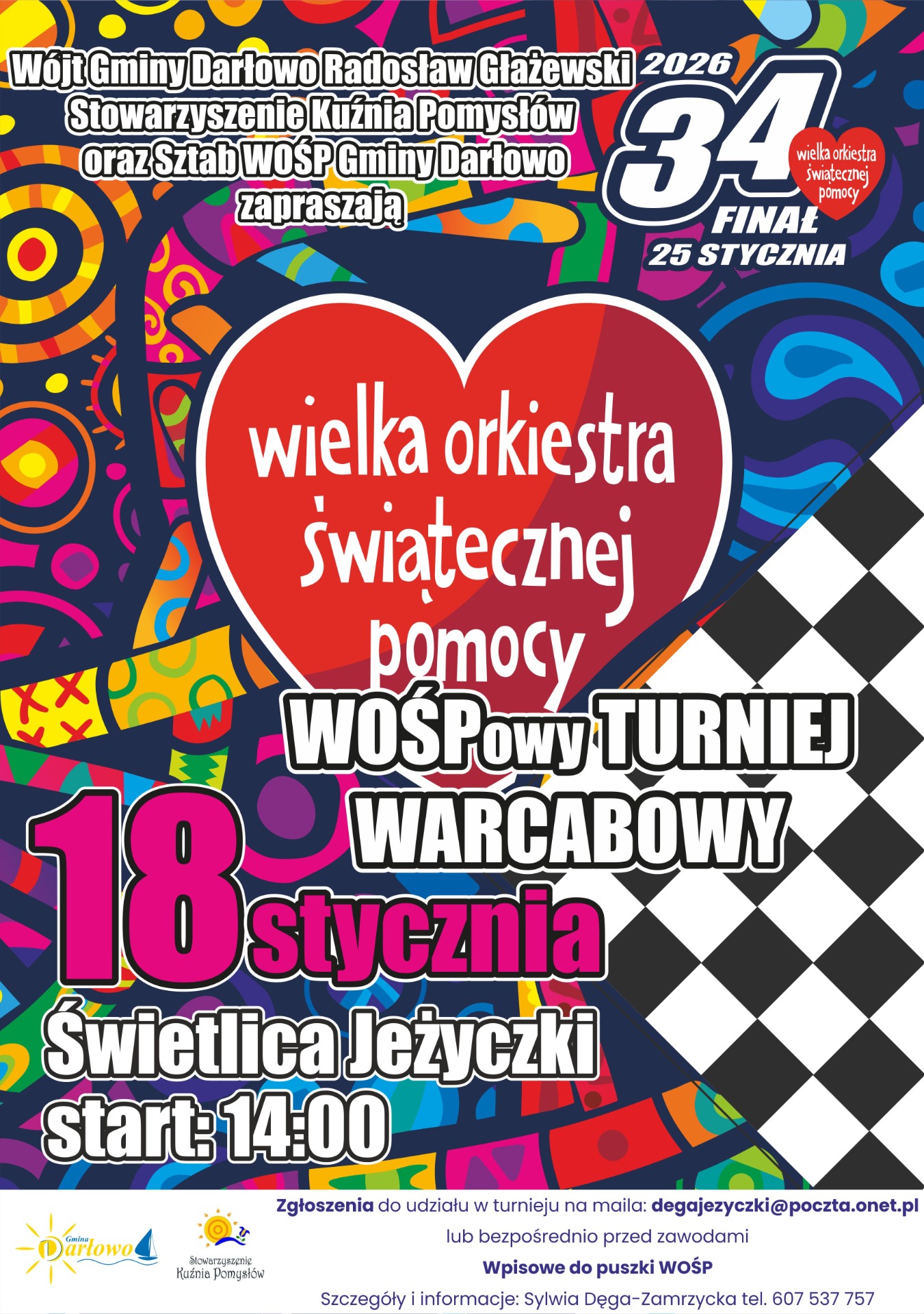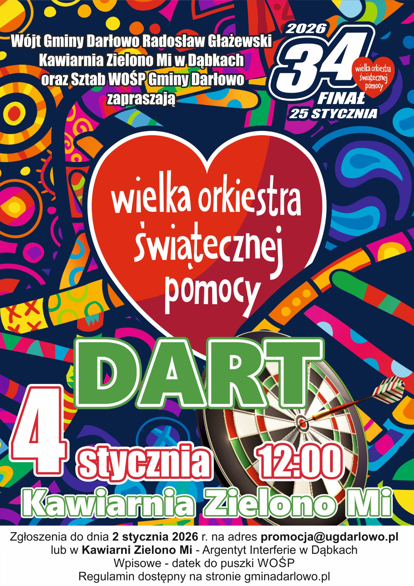 Sztab nr 4545 Gmina Darłowo po raz kolejny włącza się w działania Wielkiej Orkiestry Świątecznej Pomocy. Już 25 stycznia 2026 roku odbędzie się 34. Finał WOŚP, podczas którego mieszkańcy gminy i goście ponownie pokażą, że idea pomagania jest nam szczególnie bliska.